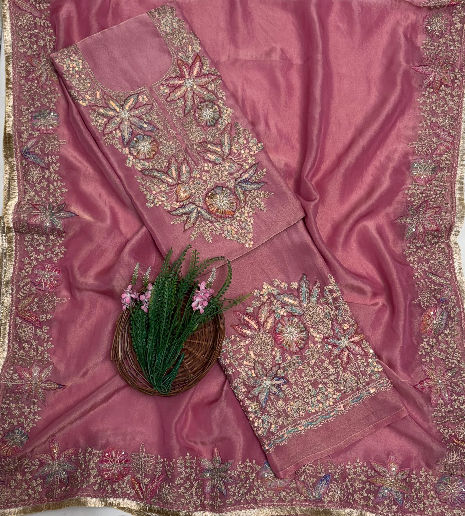 चिनॉन क्रेप ग्रे सूट फैब्रिक / फूलों का घर