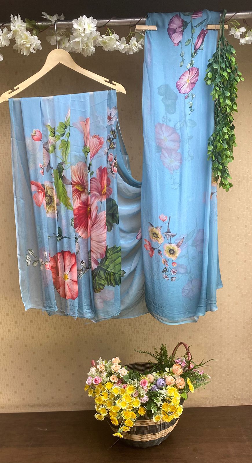 शिफॉन डस्टी ब्लू साड़ी / चिनॉन साड़ियाँ