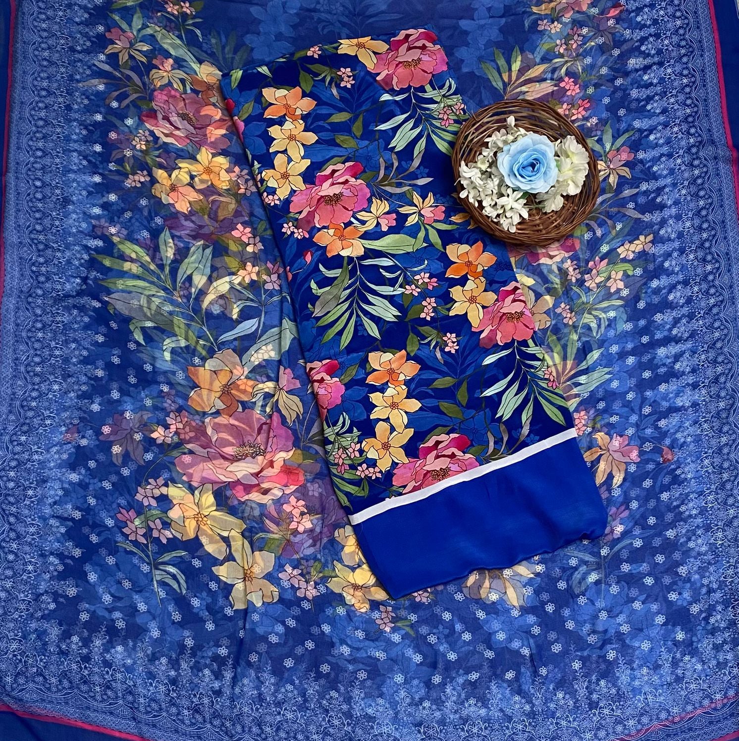 चिनॉन क्रेप ग्रे सूट फैब्रिक / फूलों का घर