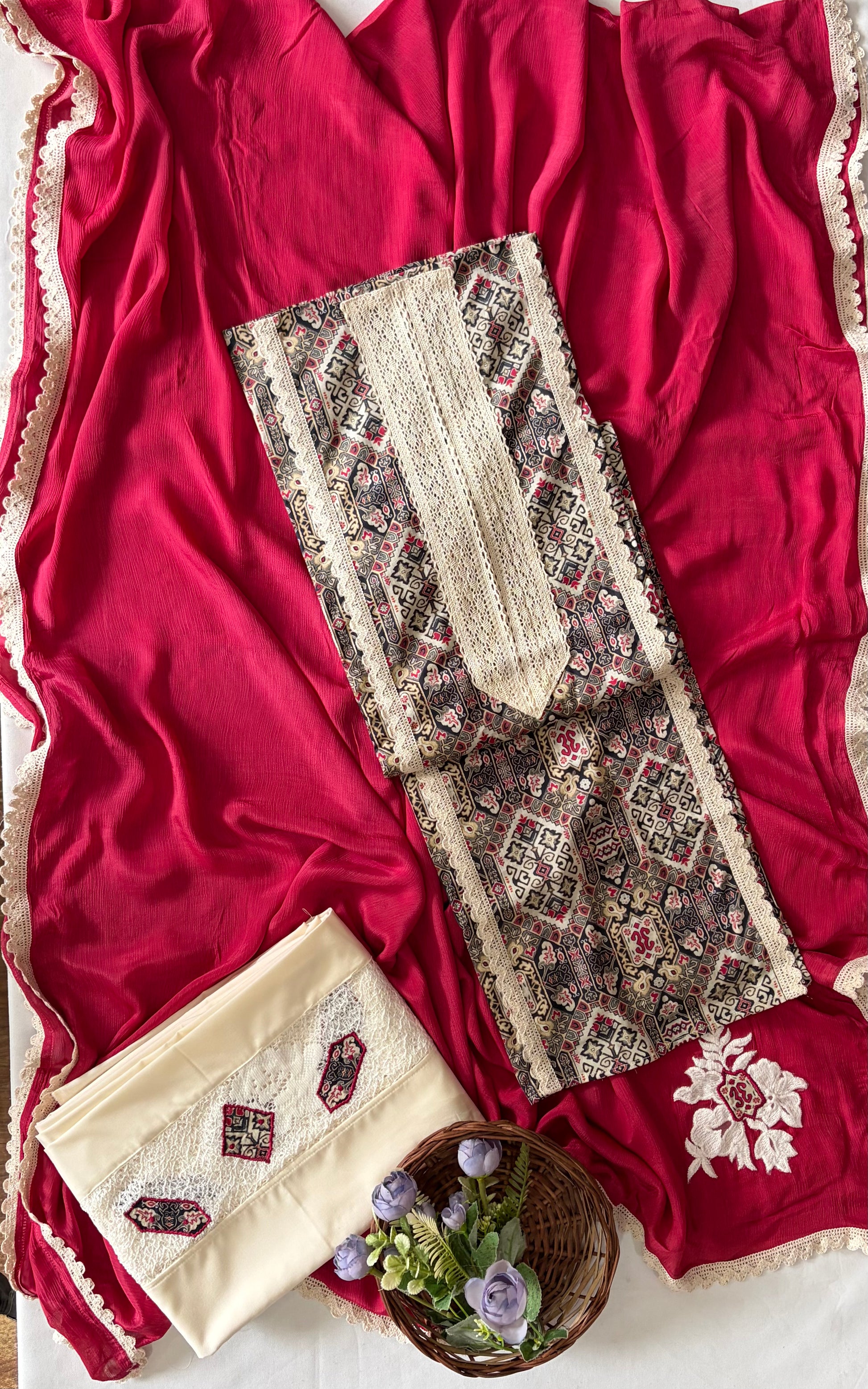 मलमल बैंगनी सूट कपड़ा / रेशम का जादू 2025
