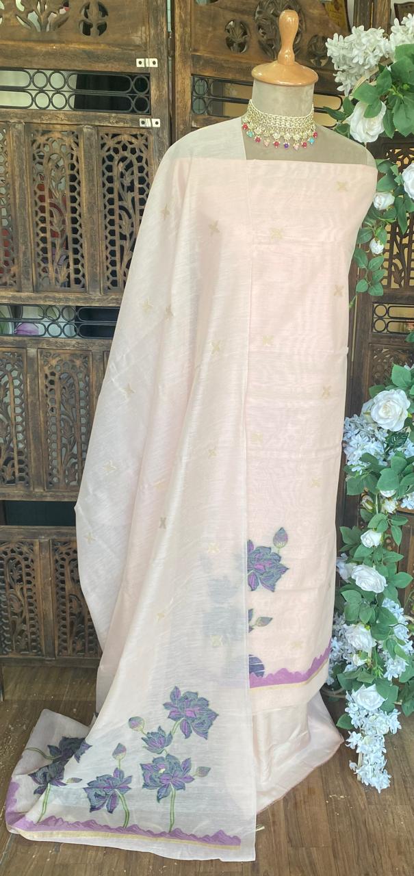मुल चंदेरी लाइट पीच सूट फ़ैब्रिक / कॉटन बाज़ार पीटी 2