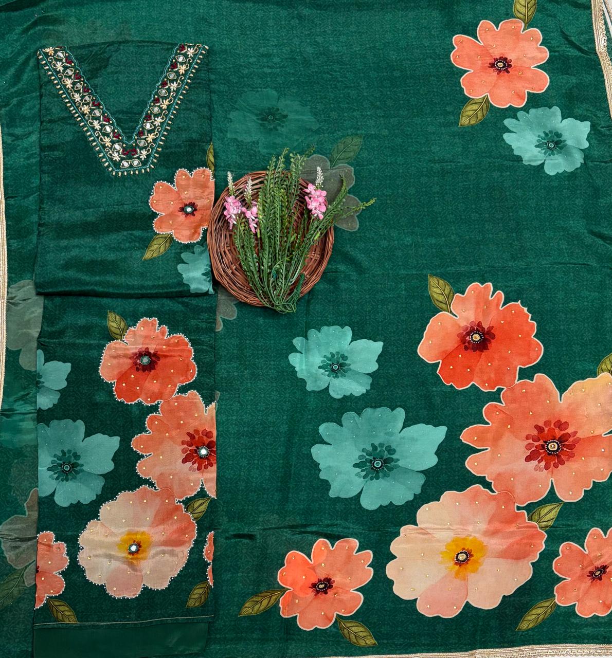 चिनॉन क्रेप ग्रे सूट फैब्रिक / फूलों का घर