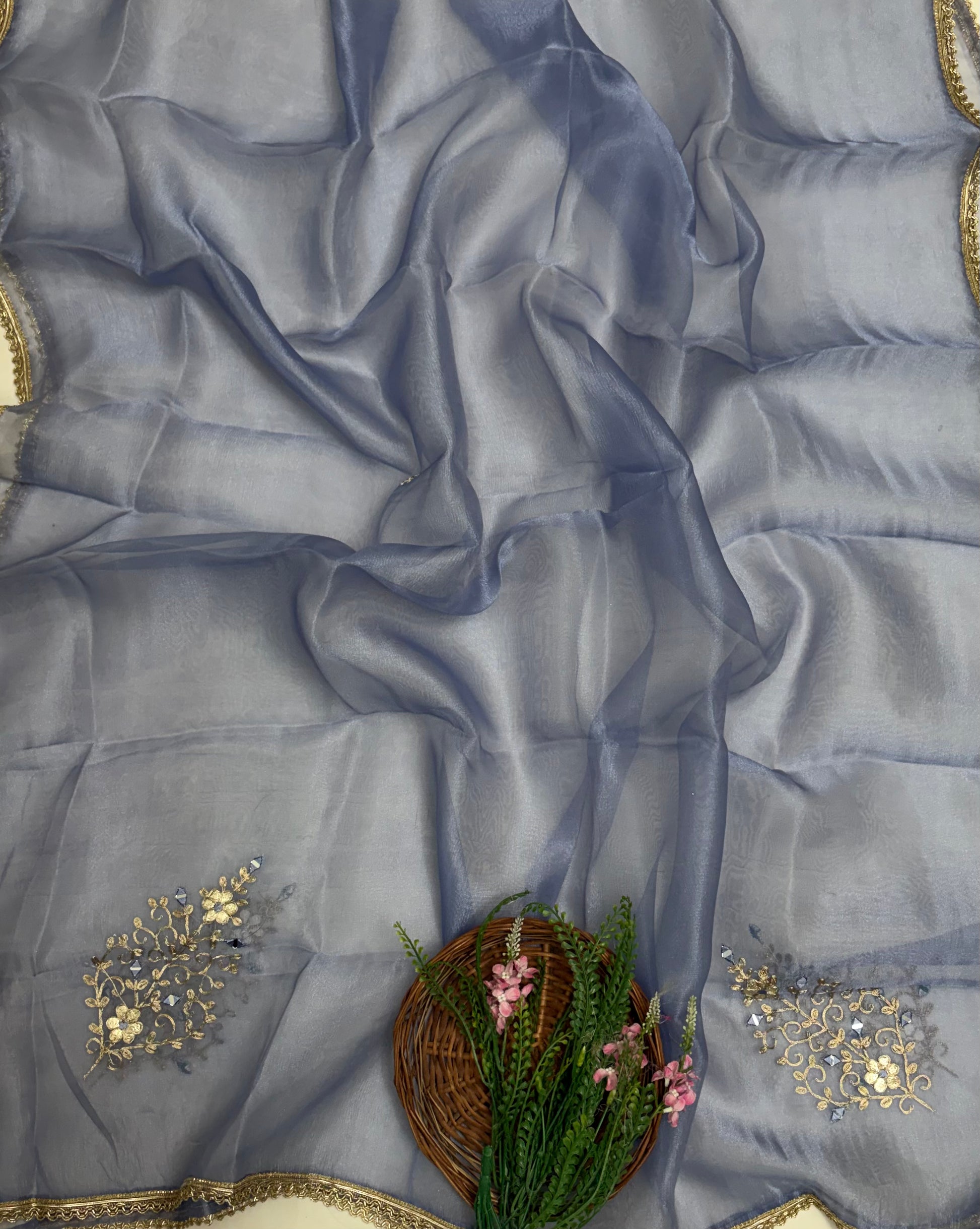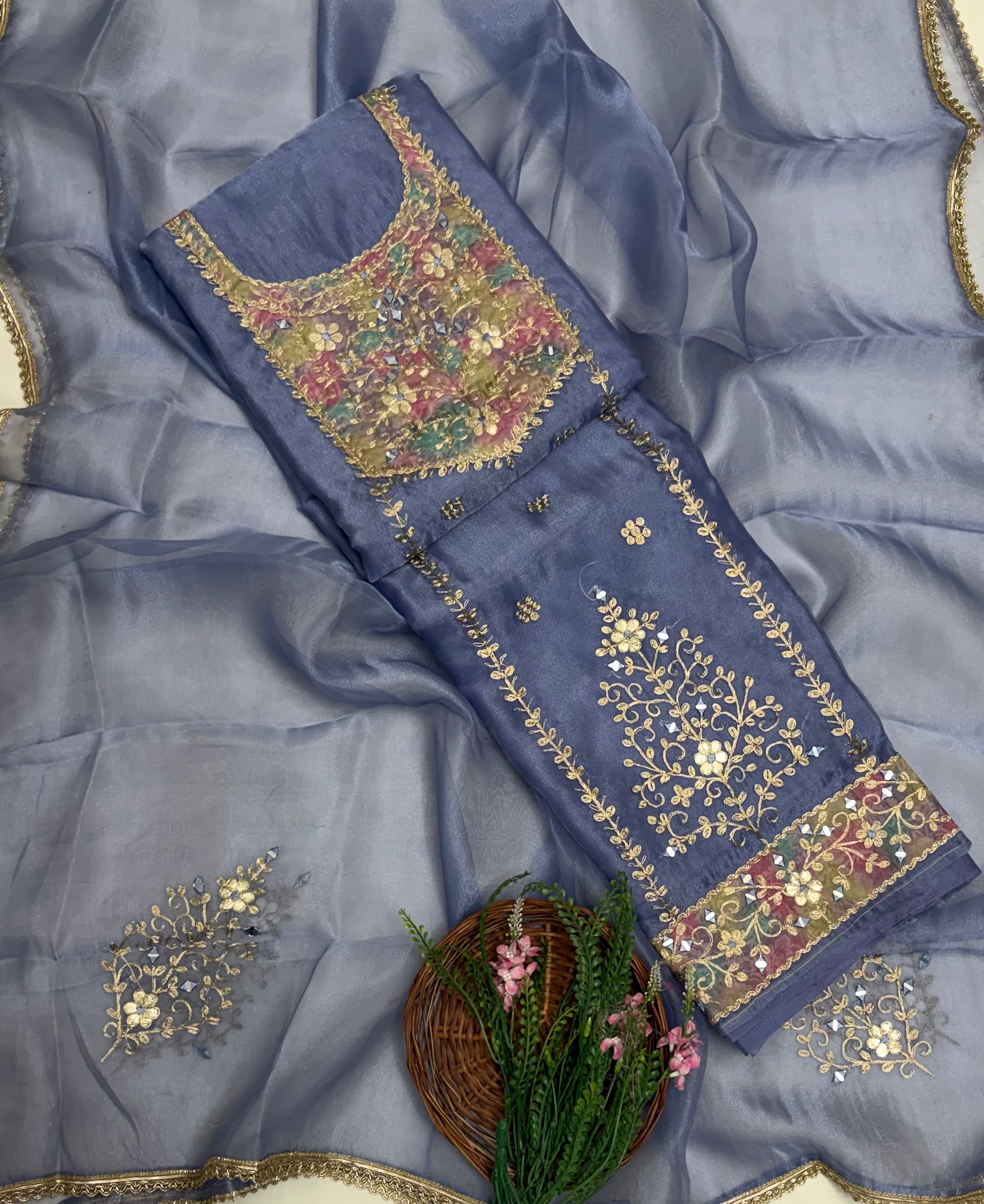 चिनॉन क्रेप ग्रे सूट फैब्रिक / फूलों का घर