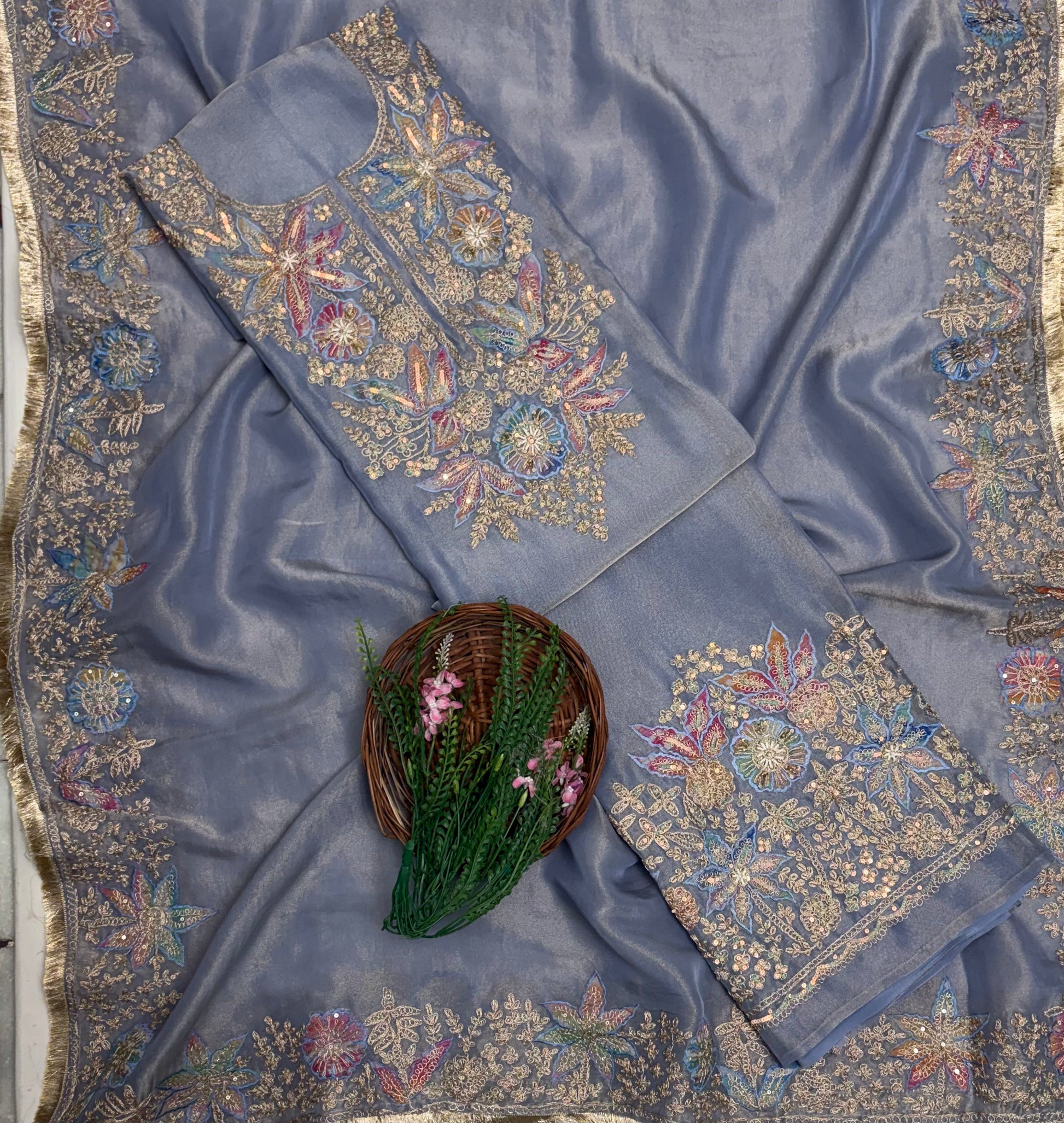 चिनॉन क्रेप ग्रे सूट फैब्रिक / फूलों का घर