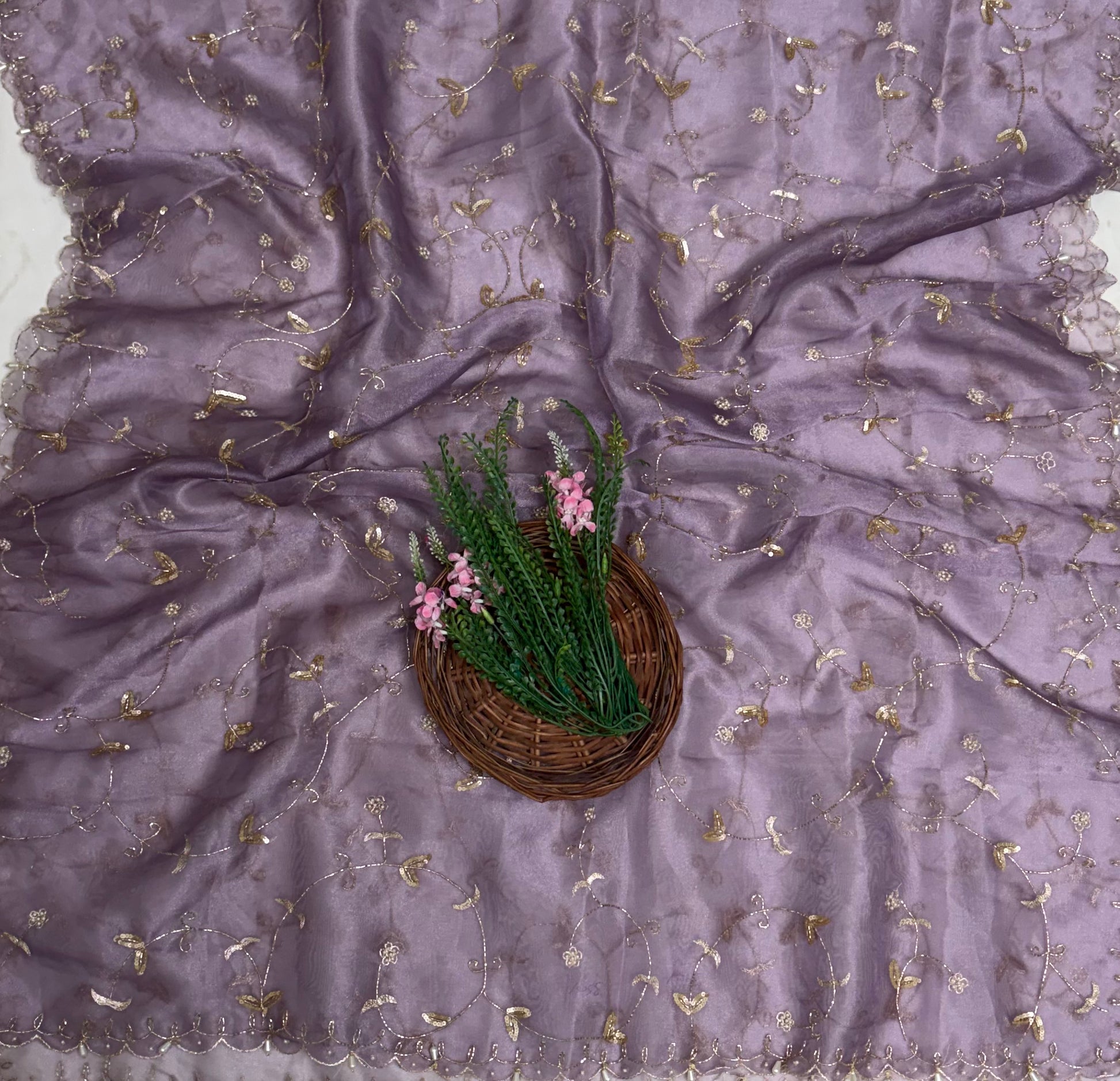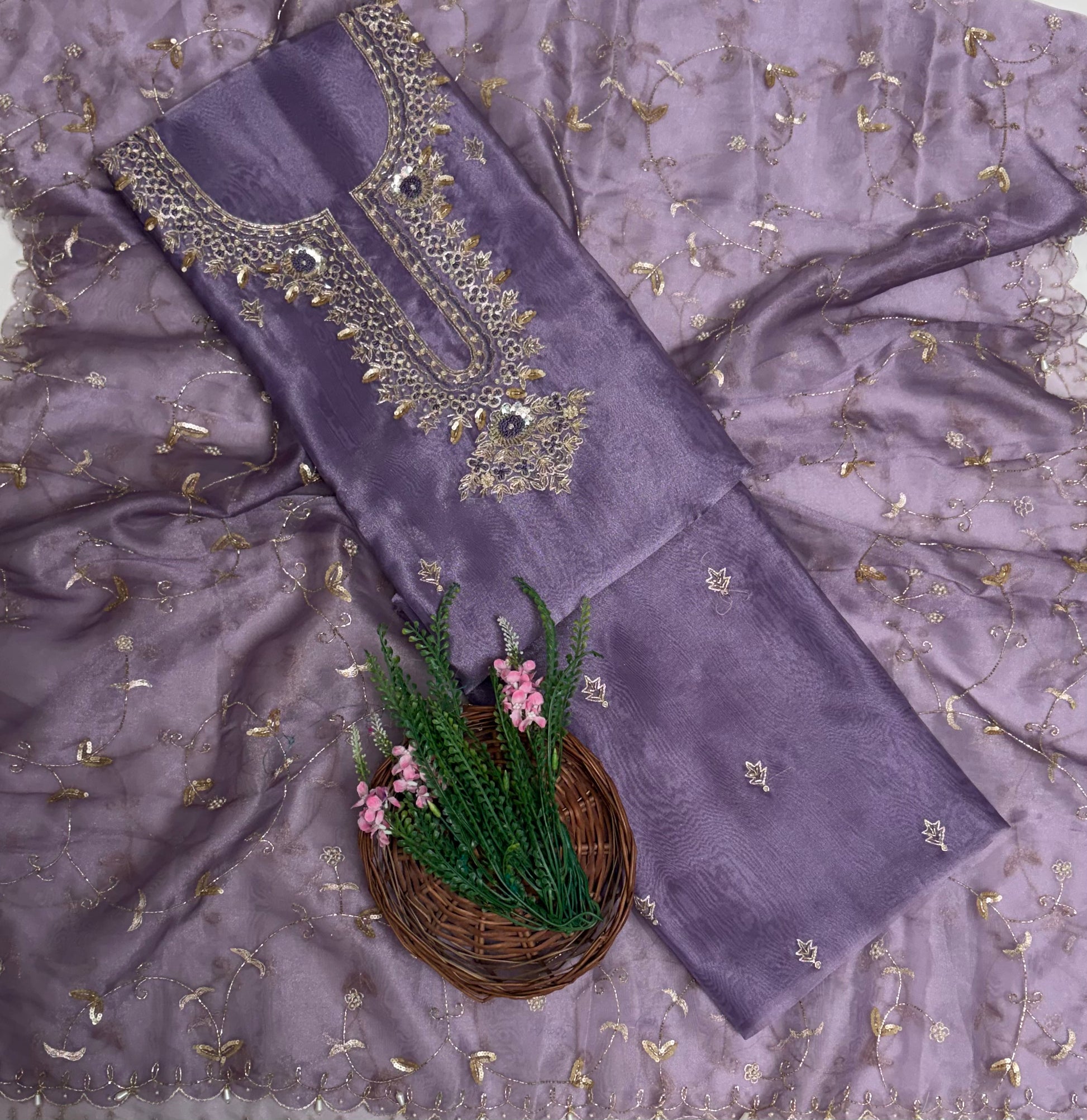 चिनॉन क्रेप ग्रे सूट फैब्रिक / फूलों का घर