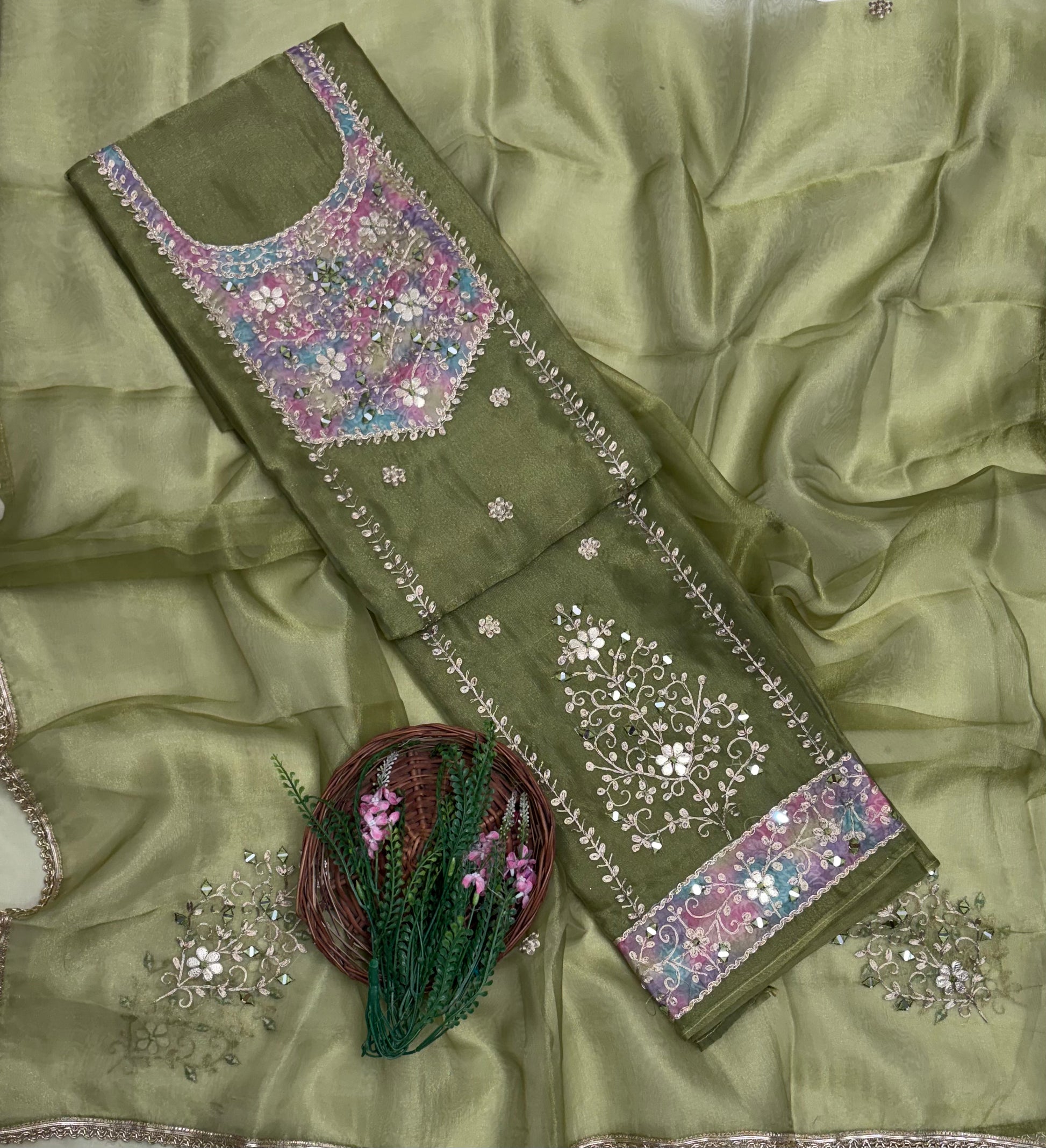चिनॉन क्रेप ग्रे सूट फैब्रिक / फूलों का घर