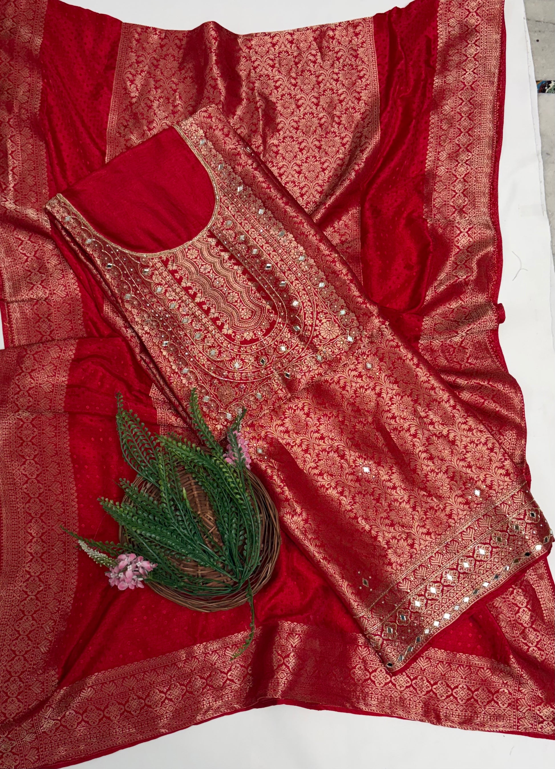 Banarasi Red Suit Fabric / Karwachauth Collection