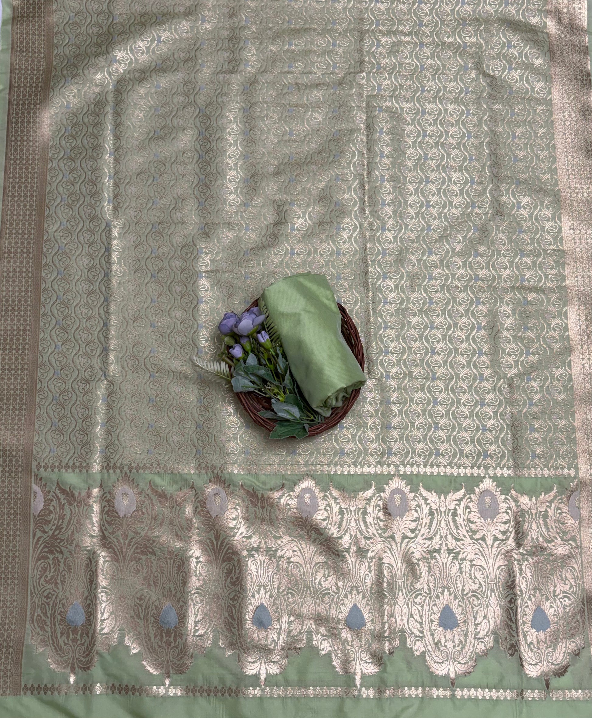 Banarasi Silk Green Suit Fabric / Banarasi Baithak