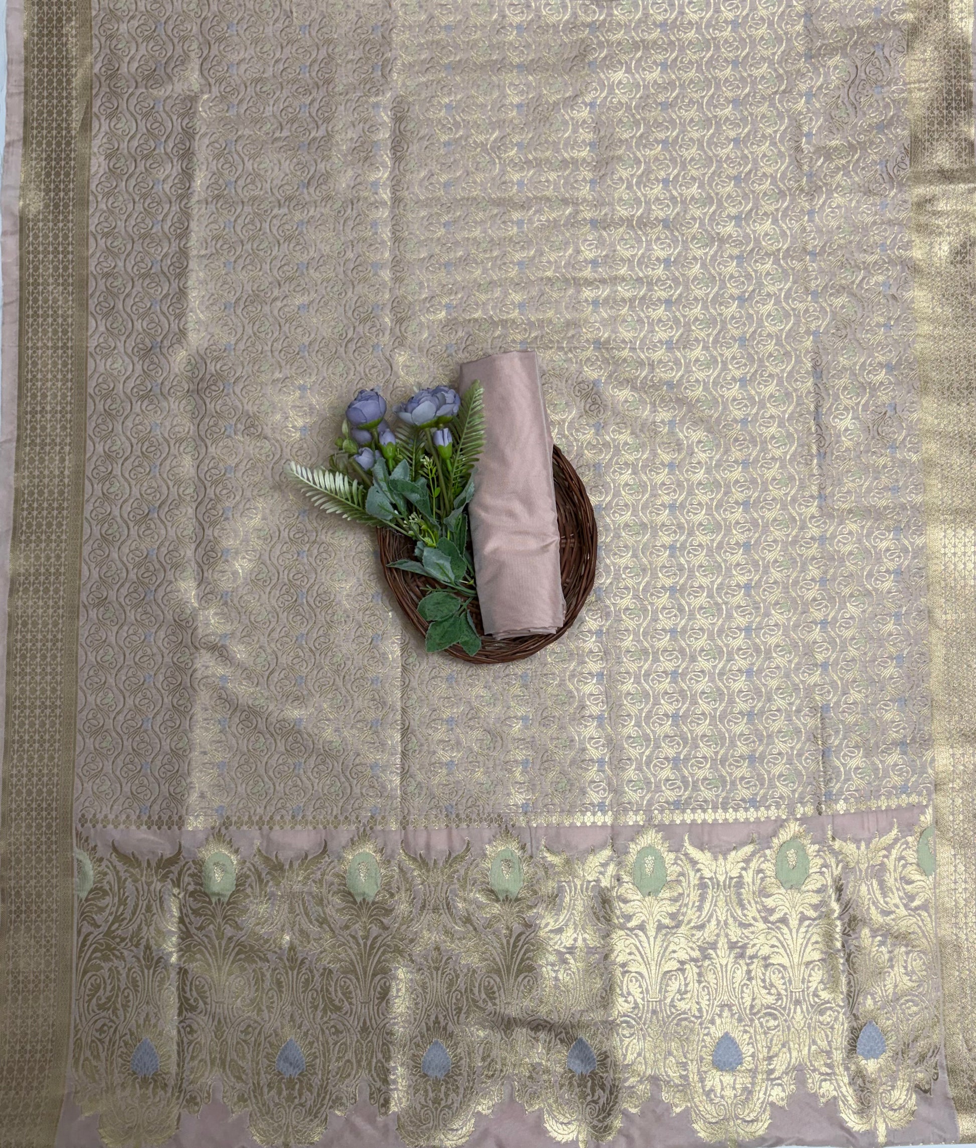 Banarasi Silk Light Peach Suit Fabric / Banarasi Baithak