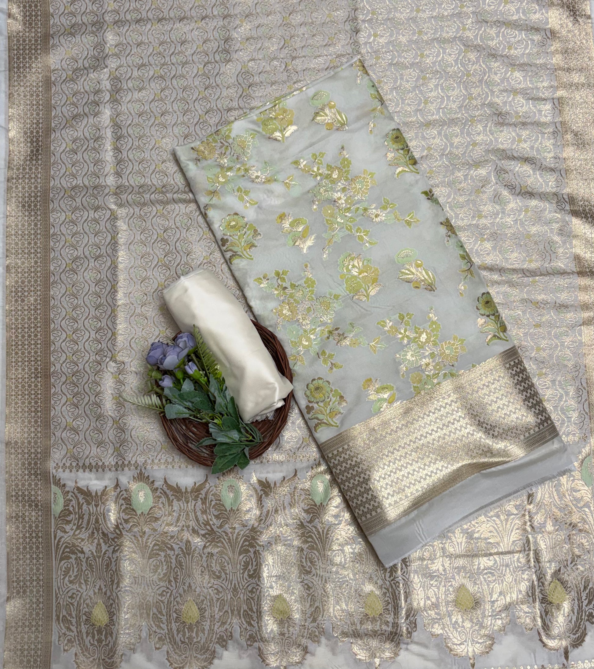 Banarasi Silk Cream Suit Fabric / Banarasi Baithak