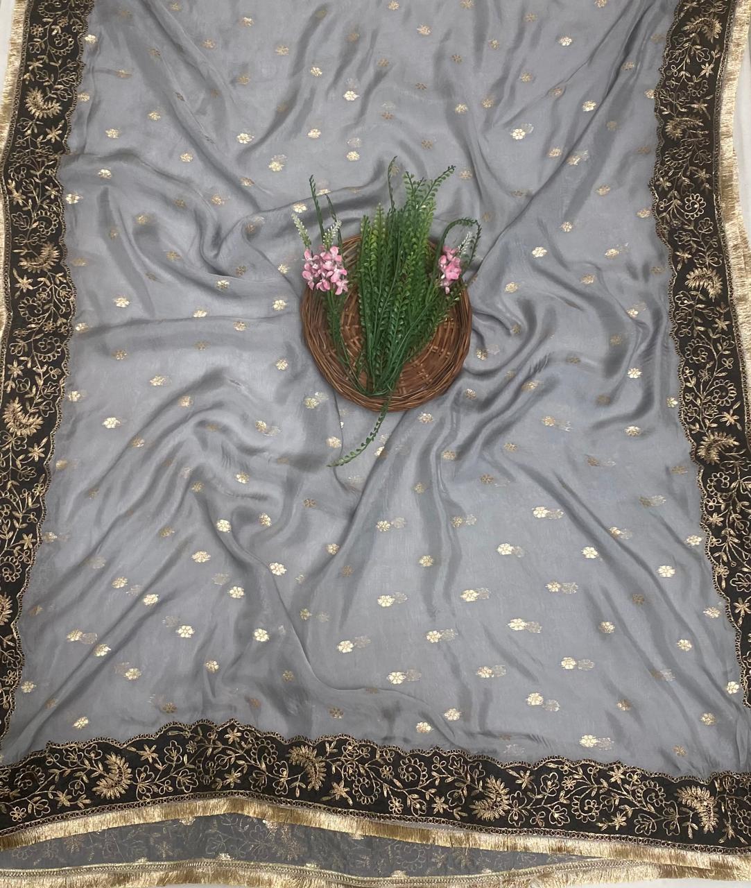 Banarasi Organza Grey With Black Suit Fabric/ Karwachauth Collection