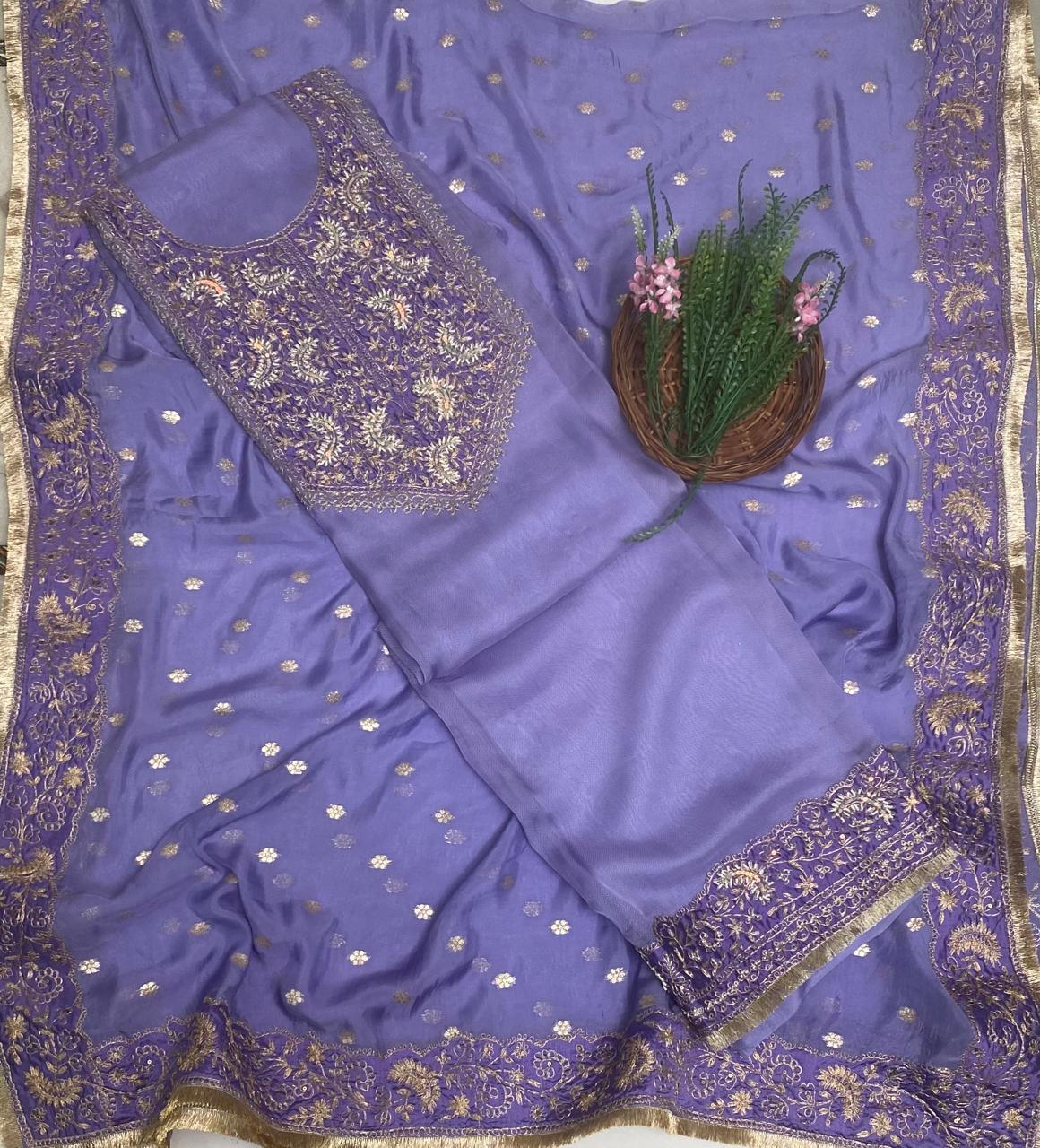 Banarasi Organza Mauve With Dark Mauve Suit Fabric/ Karwachauth Collection