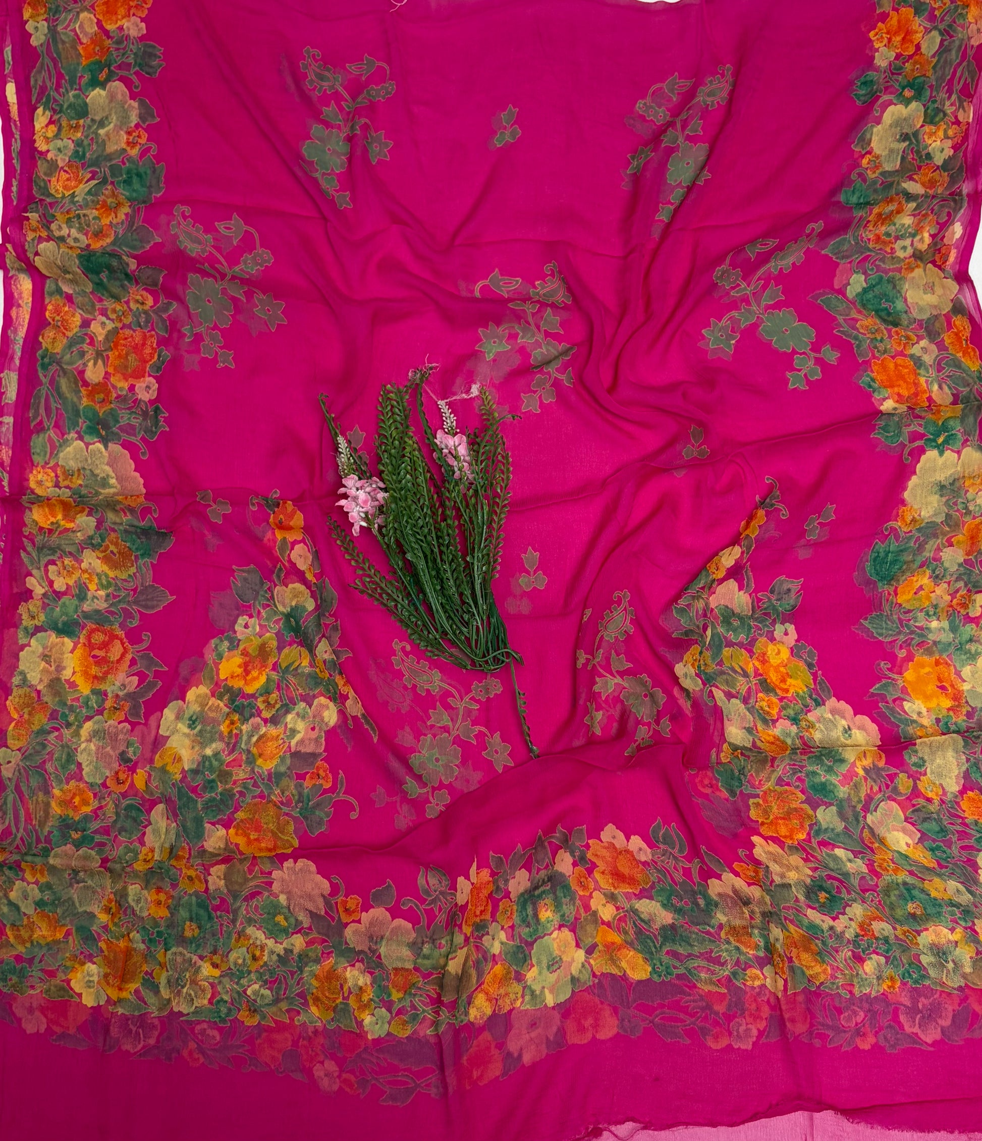 Chiffon Rani Pink Suit Fabric / Phoolon Ka Ghar