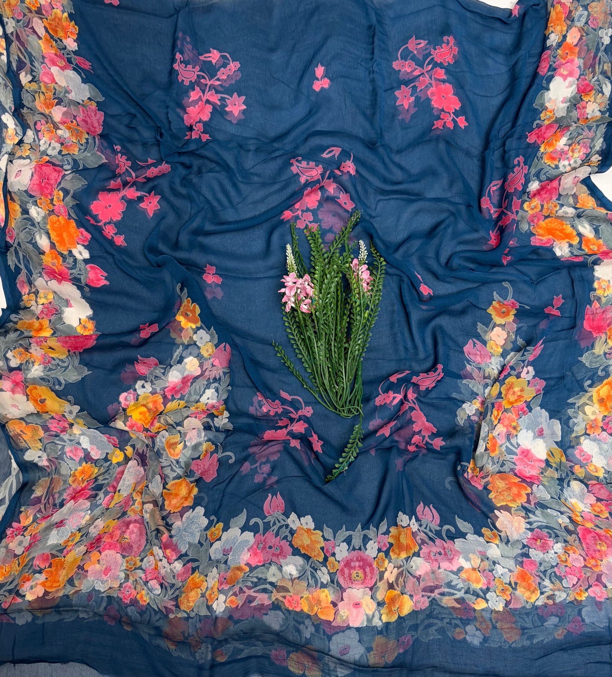 Chiffon Navy Blue Suit Fabric / Phoolon Ka Ghar