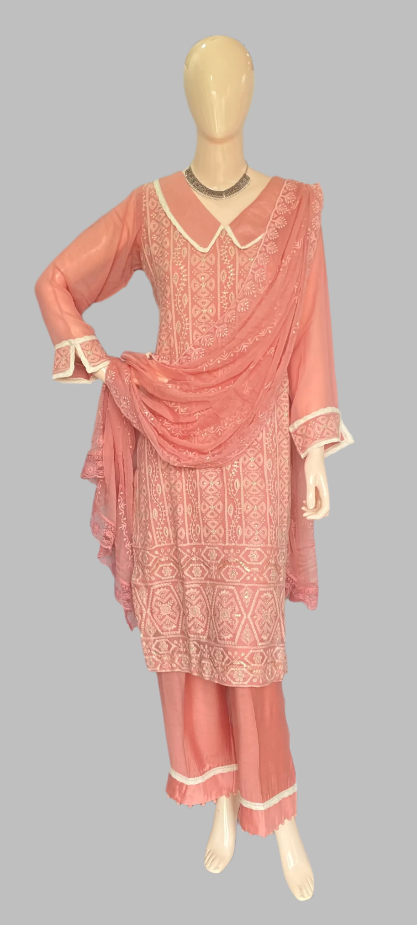 Lakhnavi Georgette Peach Stitched Suit / Lakhnavi Charm