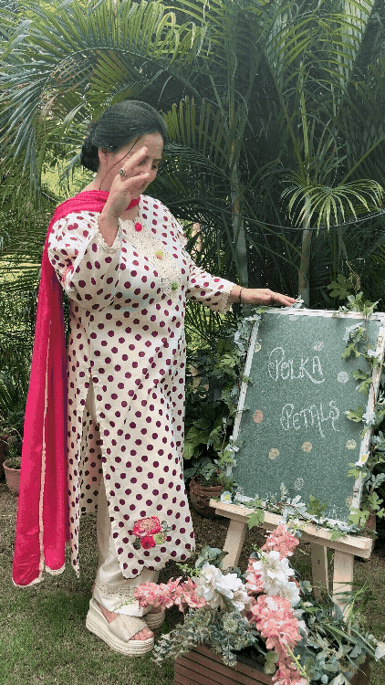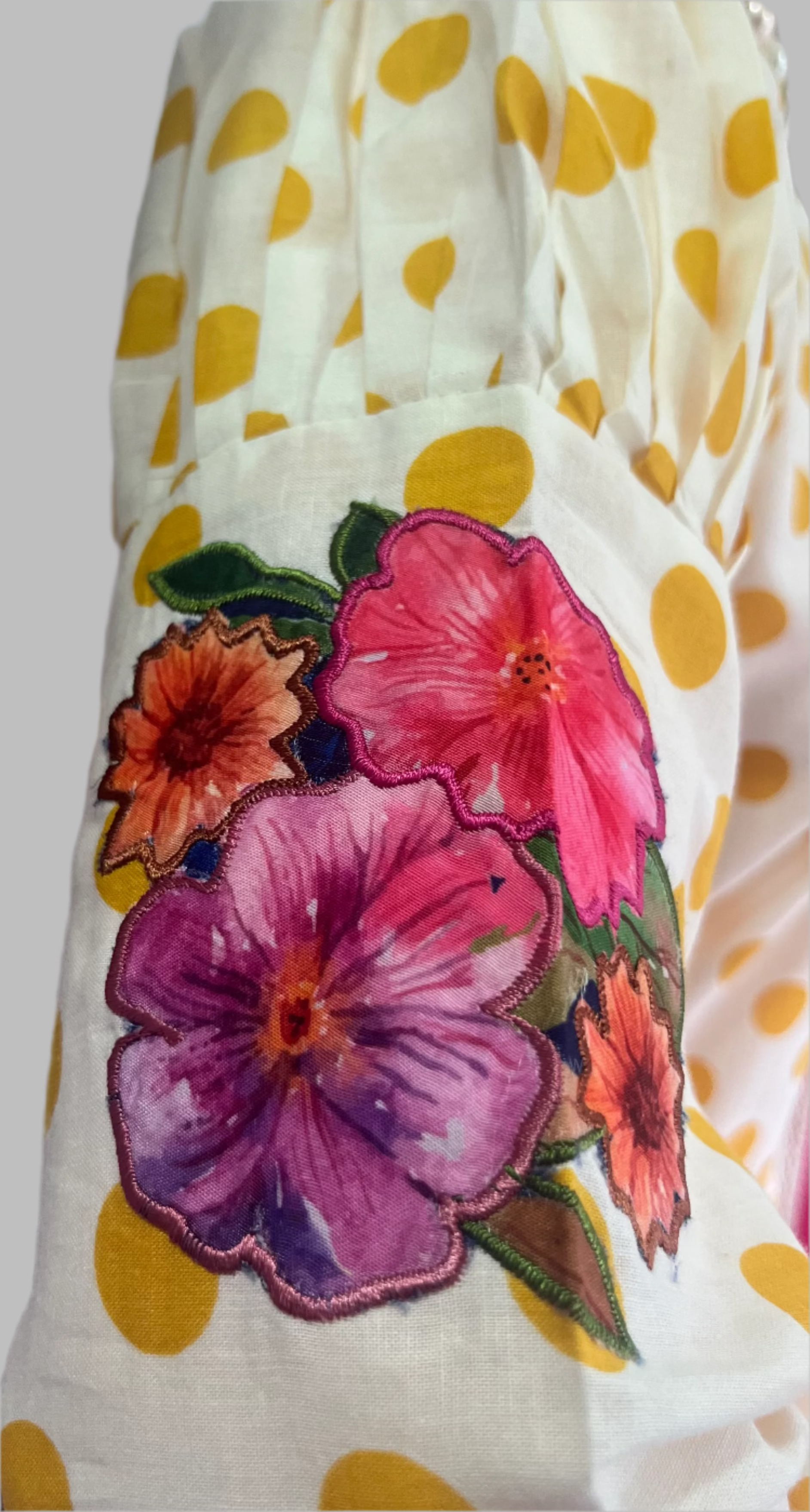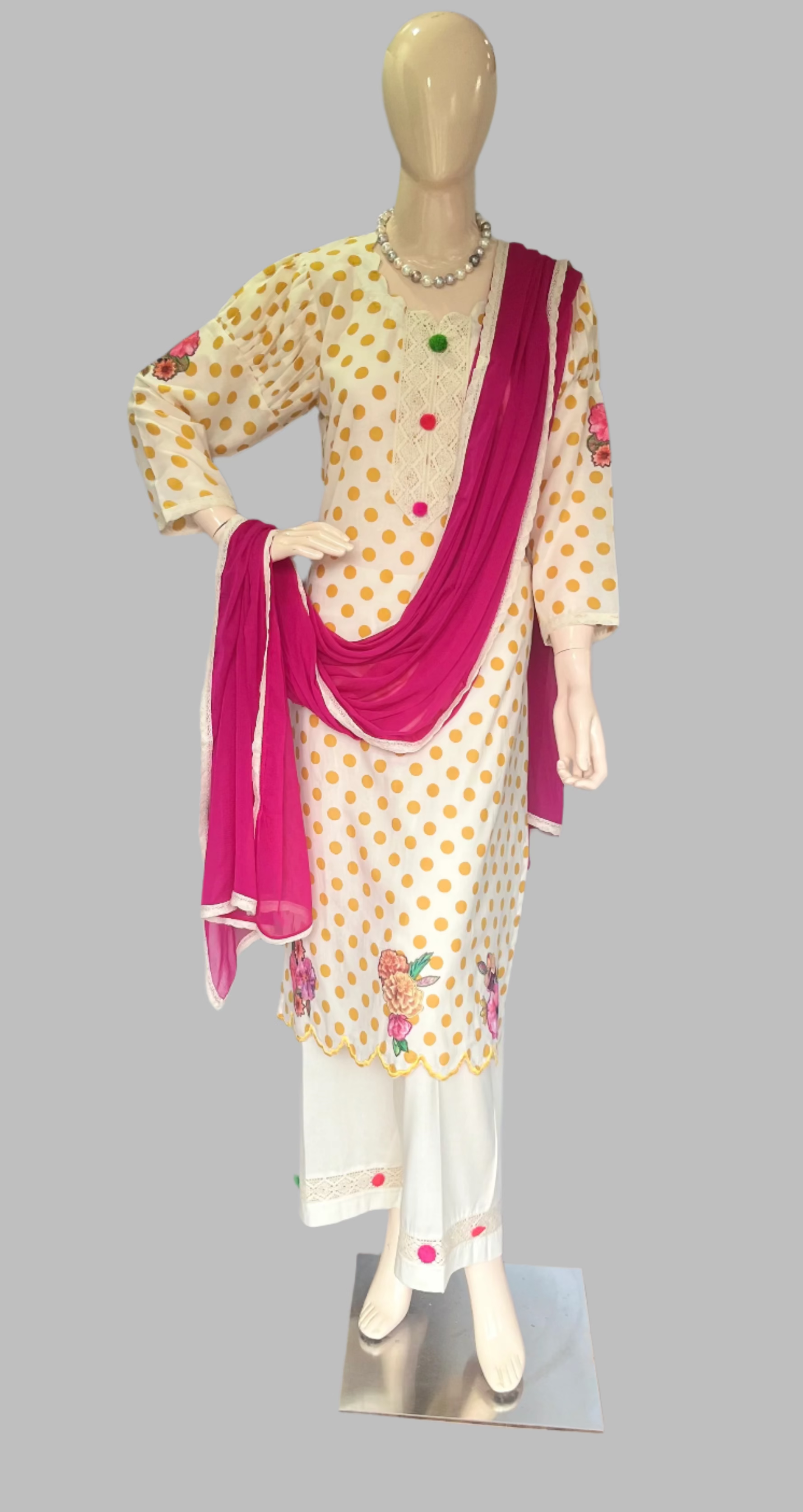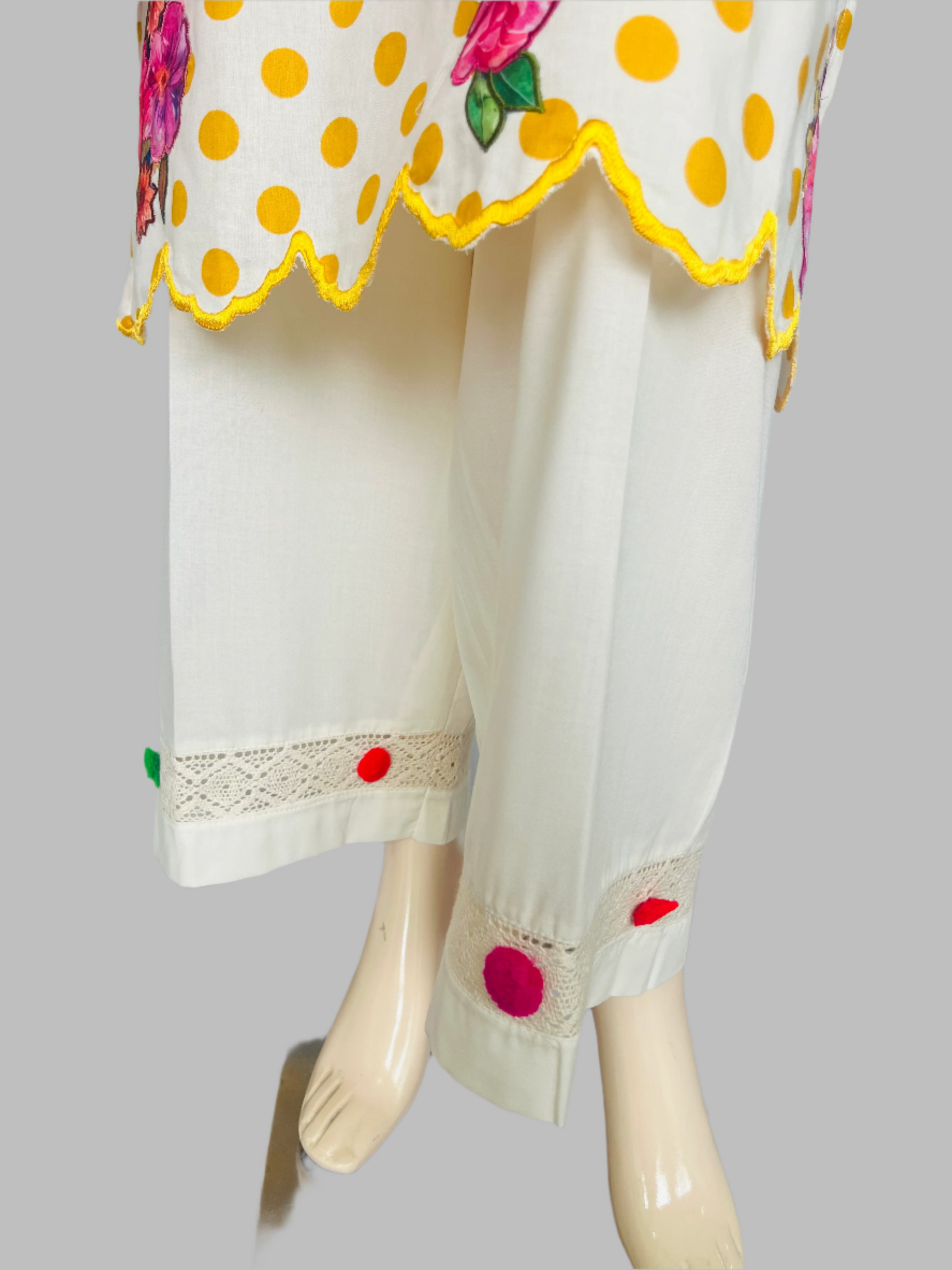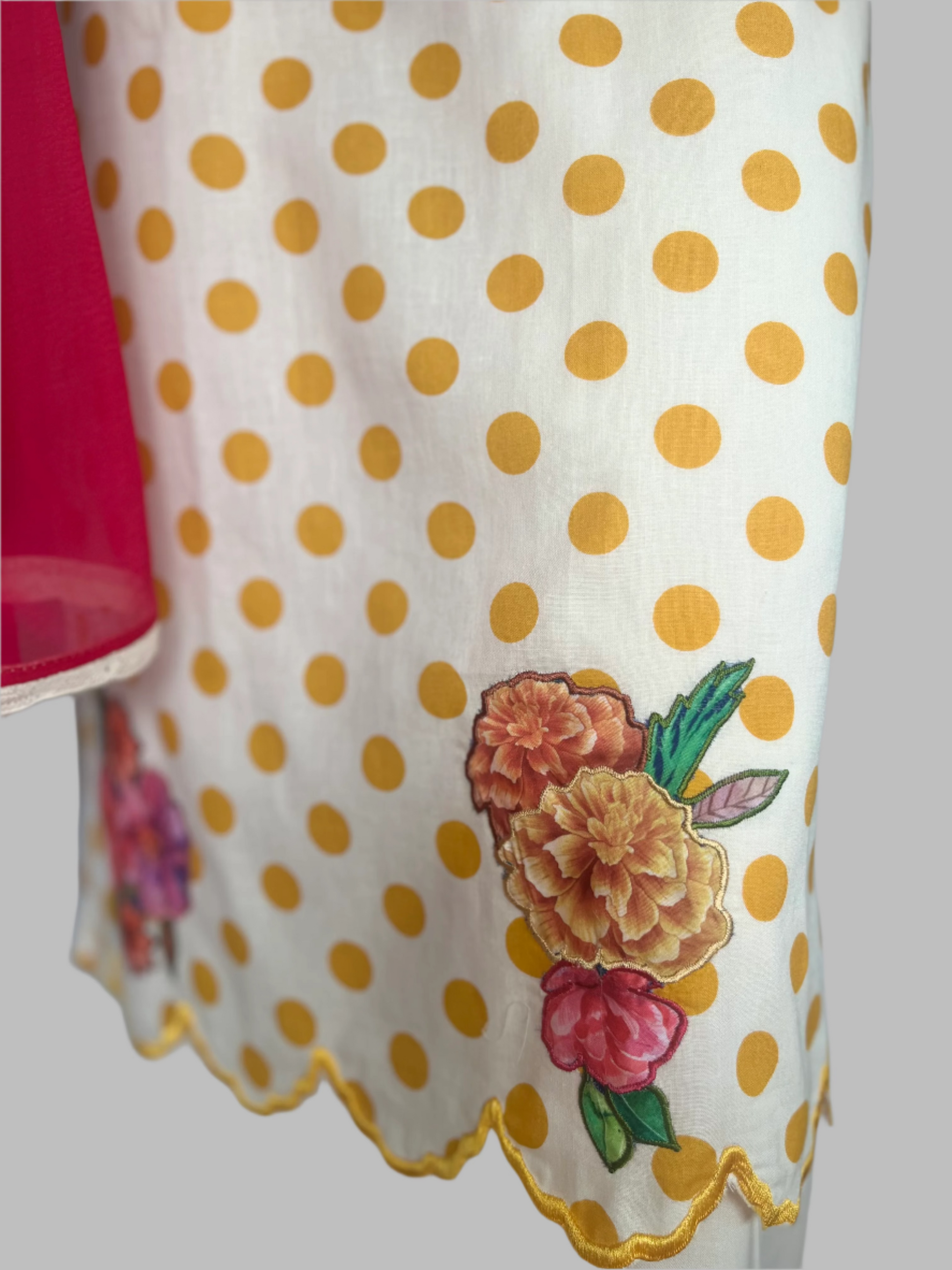 Cotton Cream With Yellow Stitched Suit / Polka Petals