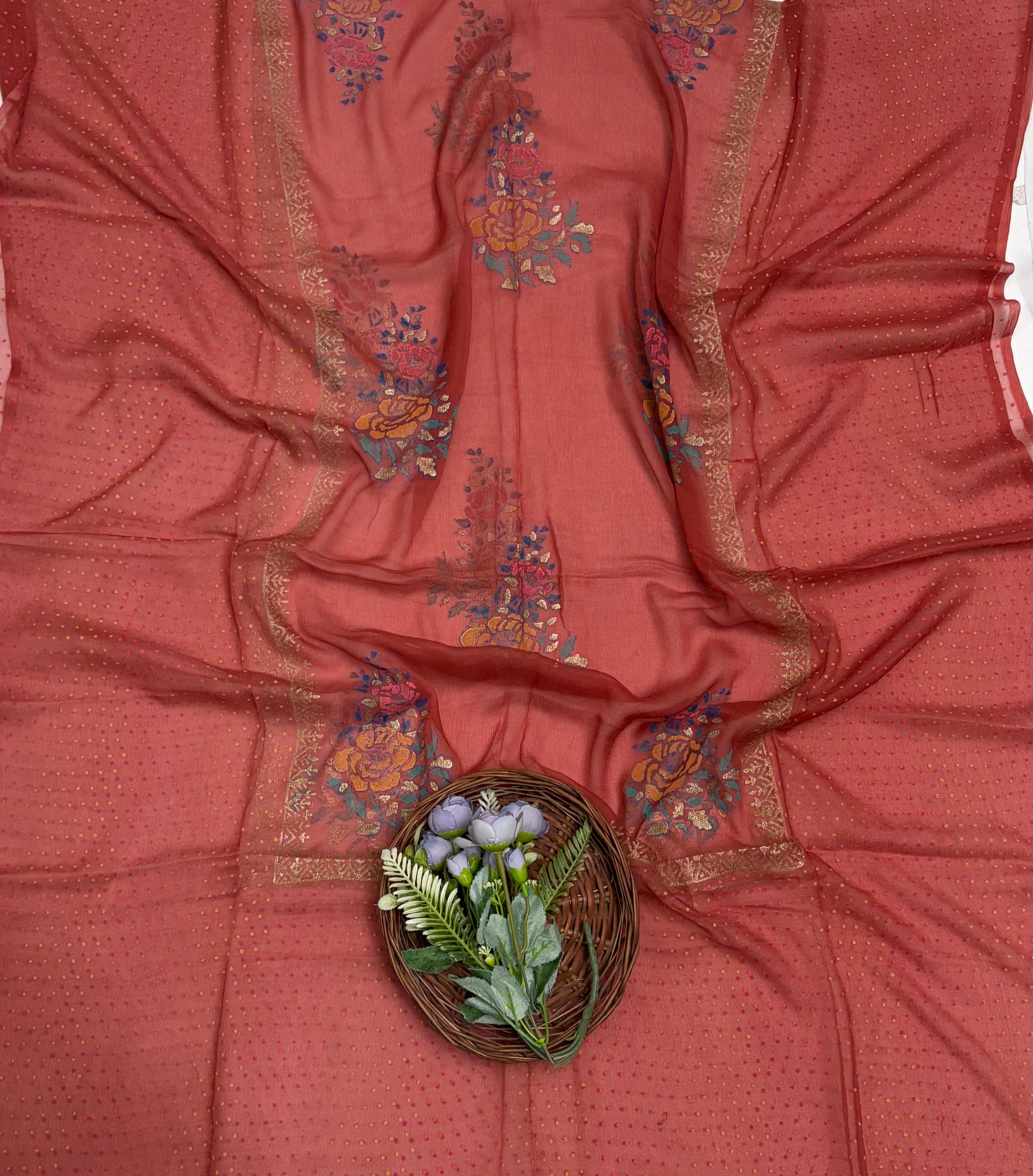 Cotton Dusty Brown Suit Fabric / Block Printing Suits