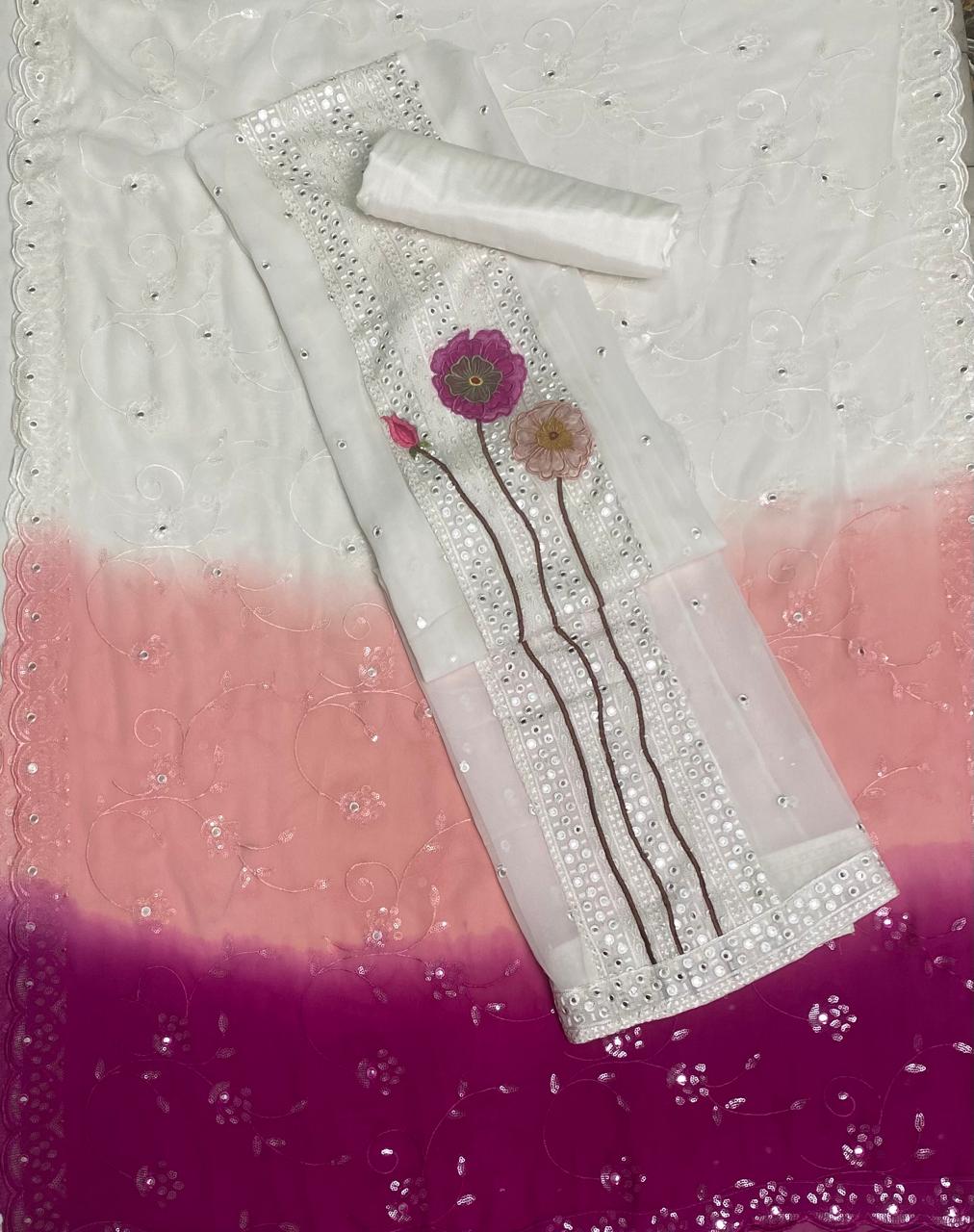 Georgette White Suit Fabric / Magic Of Resham 2025