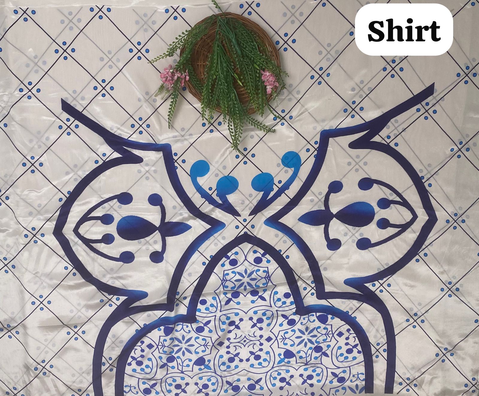 Crepe Beige With Blue Co-Ord Set Fabric / Co-Ord Set Collection