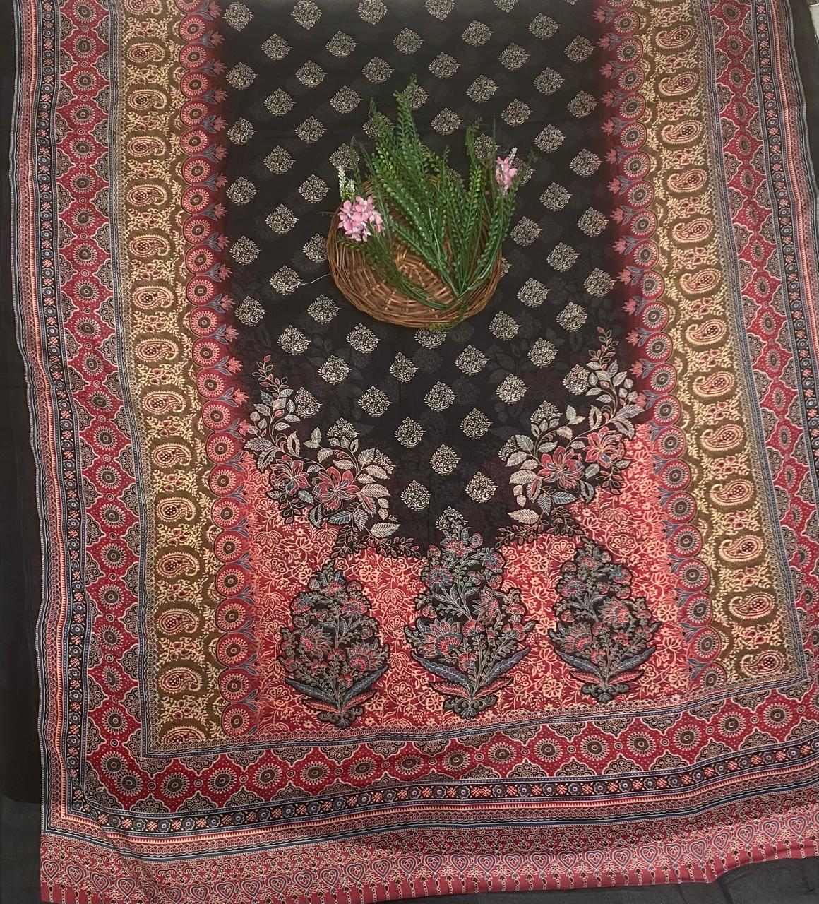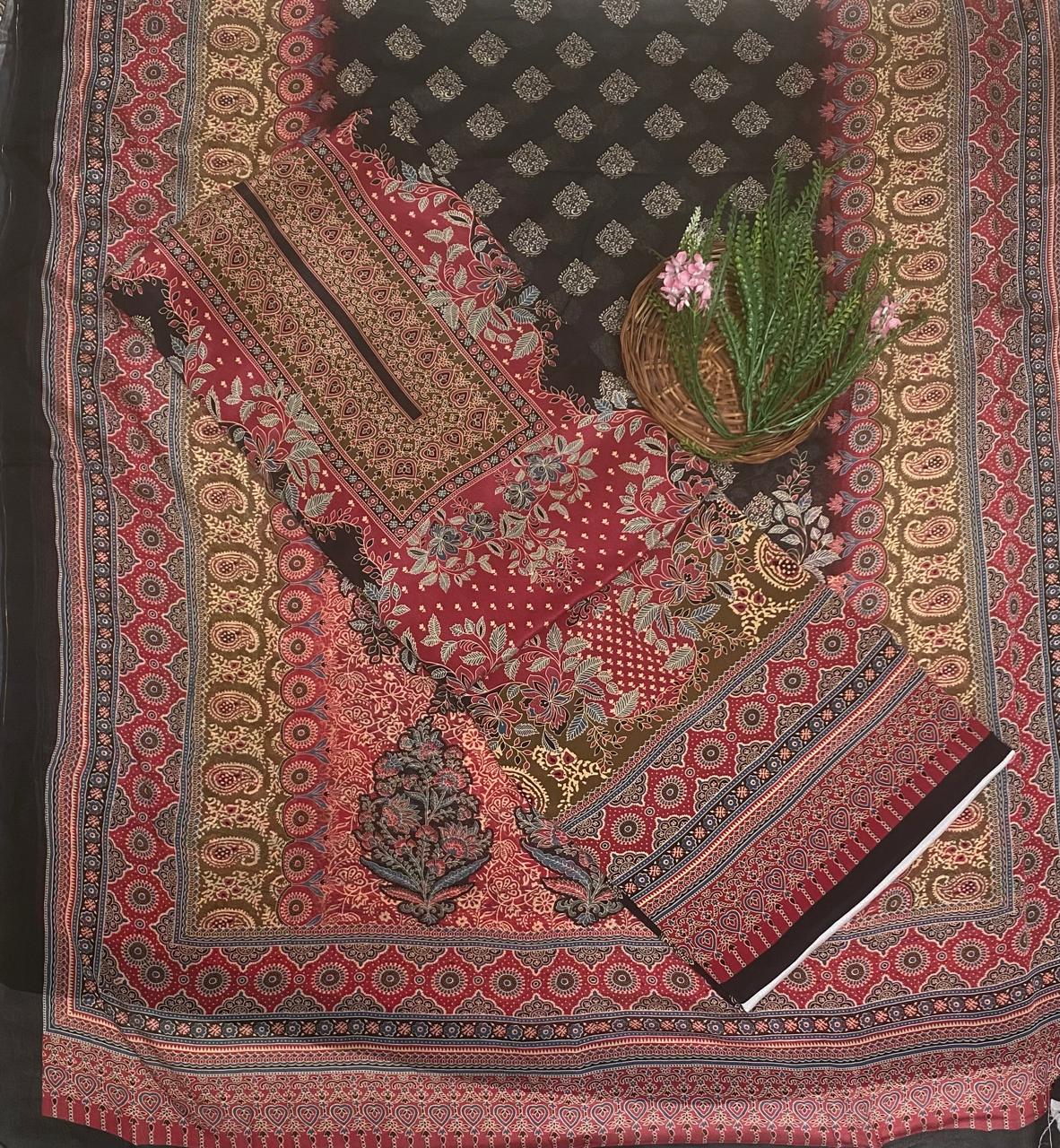 (Pre- Order) Crepe Black Suit Fabric / Phoolon Ka Ghar