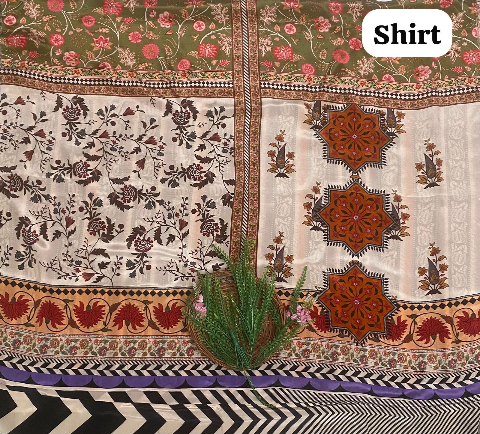 Crepe Beige With Orange Co-Ord Set Fabric / Co-Ord Set Collection