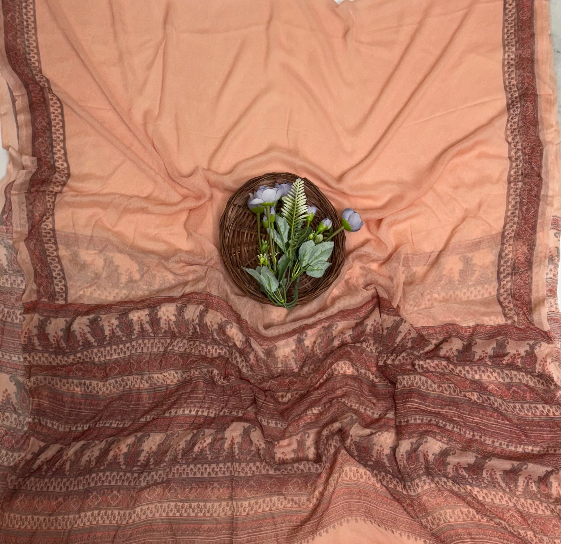 Crepe Peach Suit Fabric / Phoolon Ka Ghar