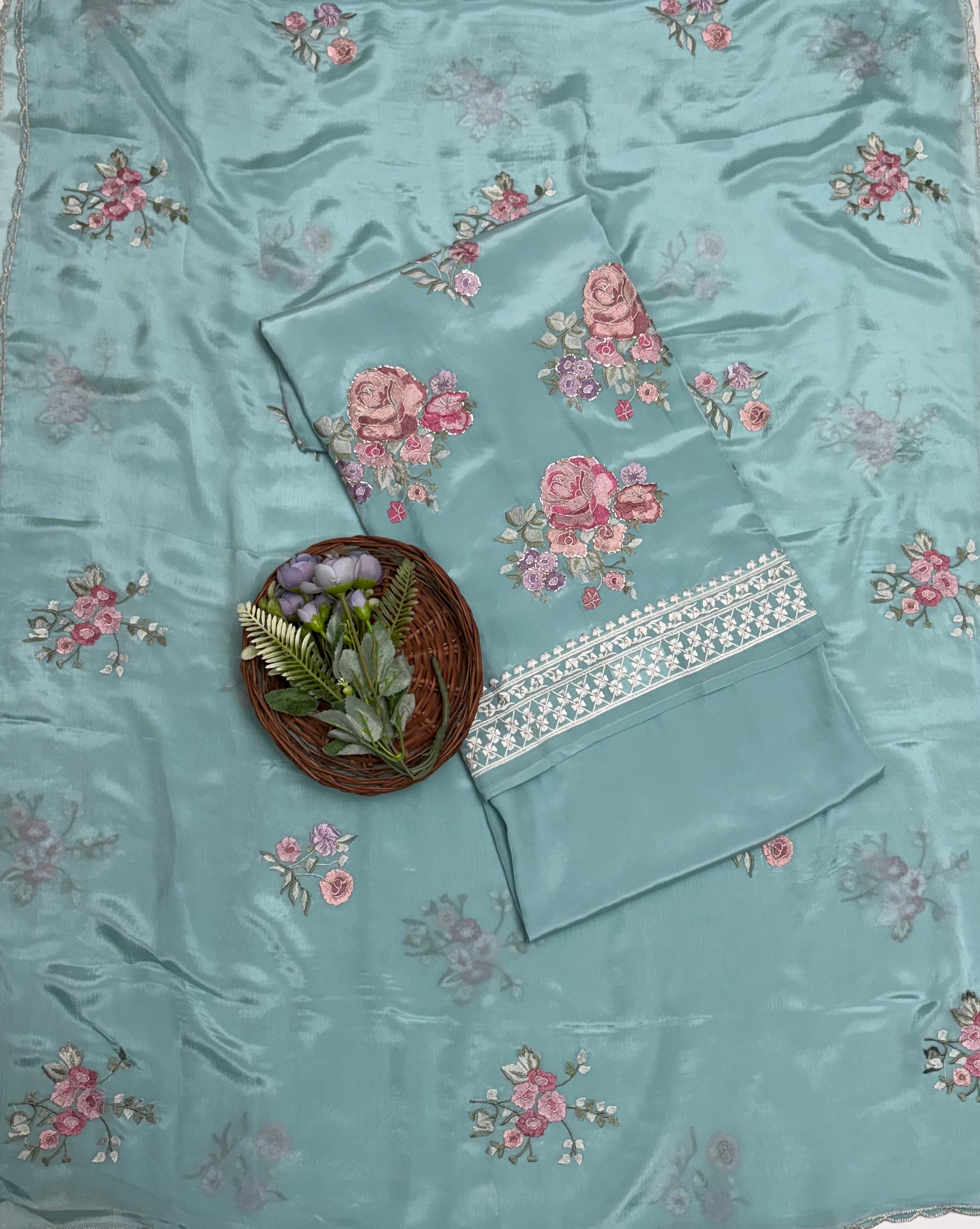Crepe Light Blue Suit Fabric / Karwachauth Collection