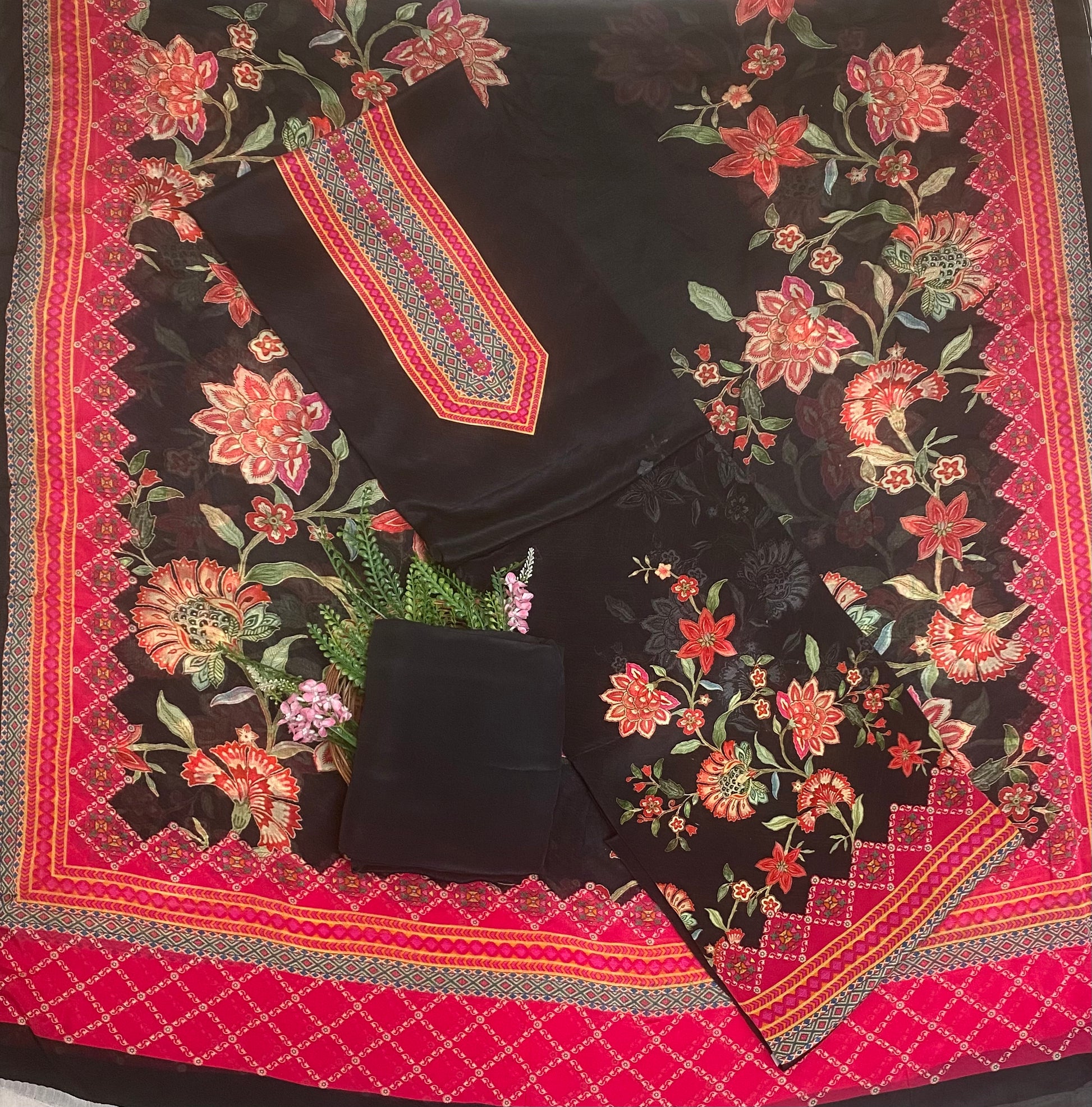 Crepe Black Suit Fabric / Phoolon Ka Ghar