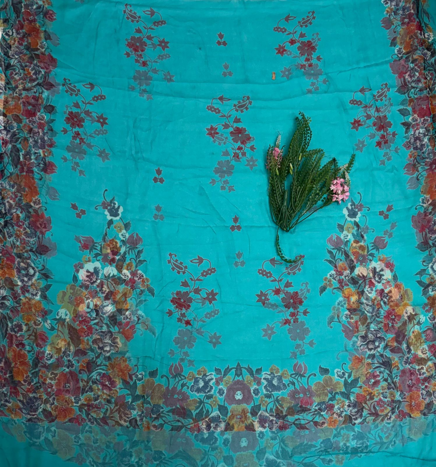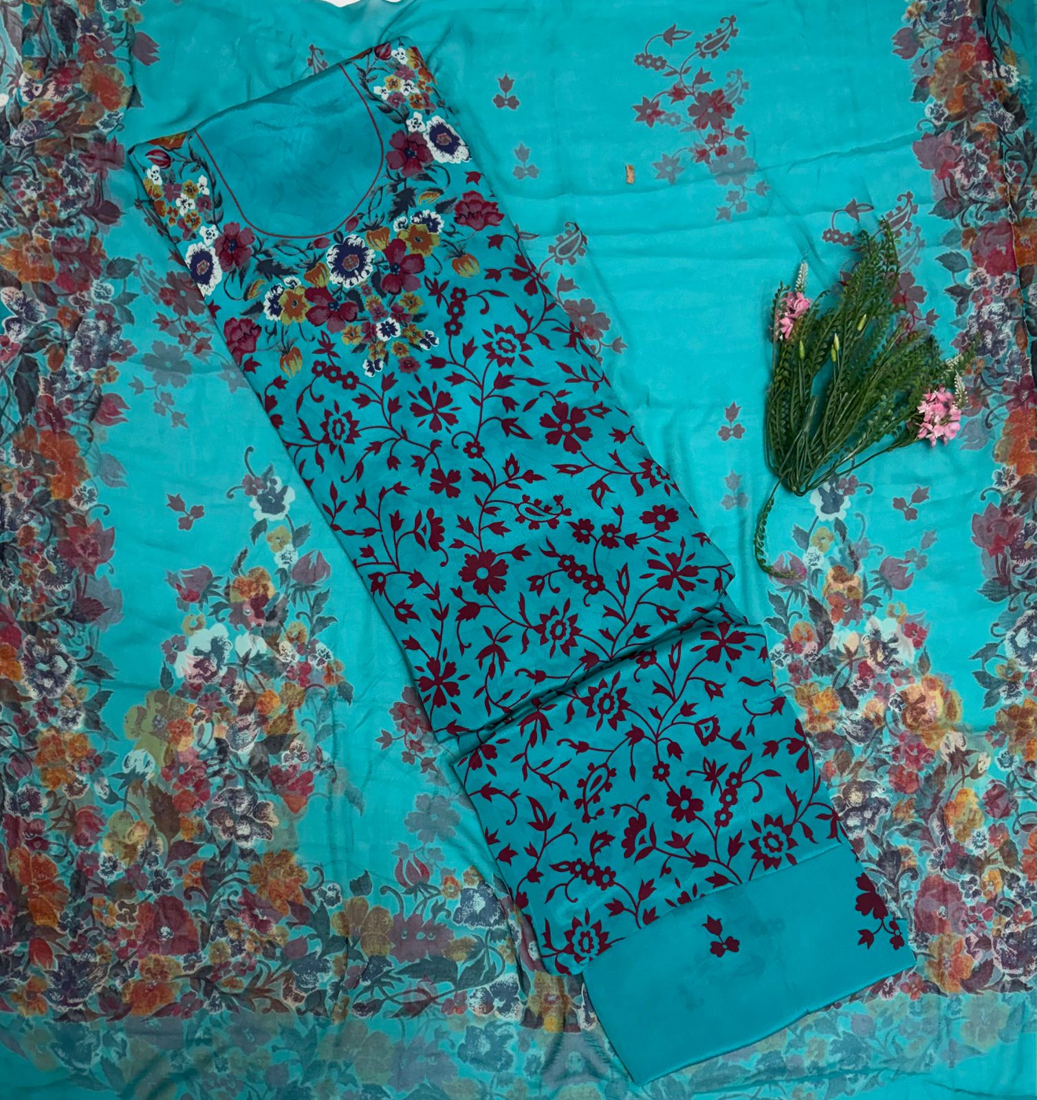 Crepe Sea Green Suit Fabric / Phoolon Ka Ghar