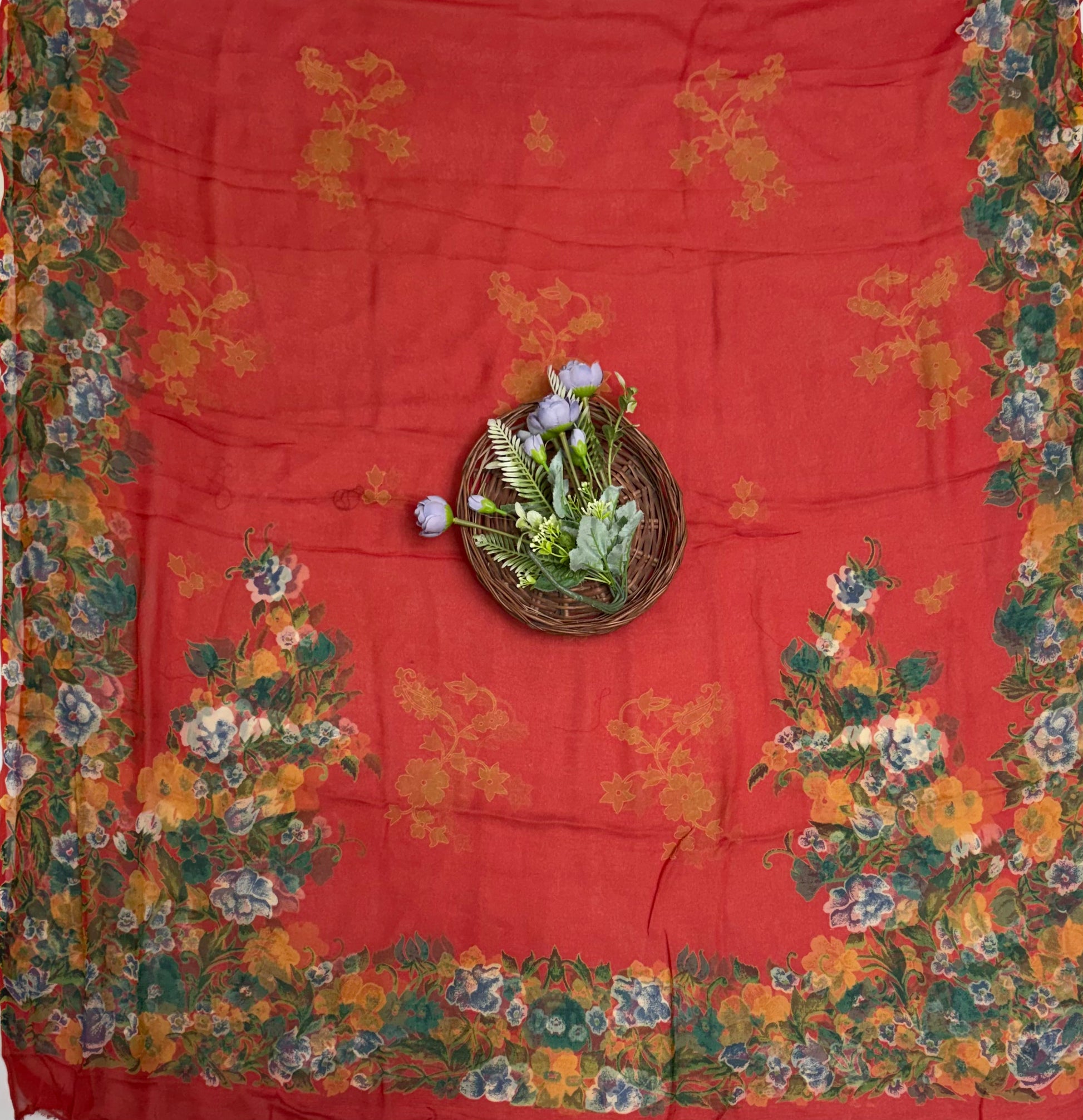 Crepe Orange With Yellow Suit Fabric / Phoolon Ka Ghar