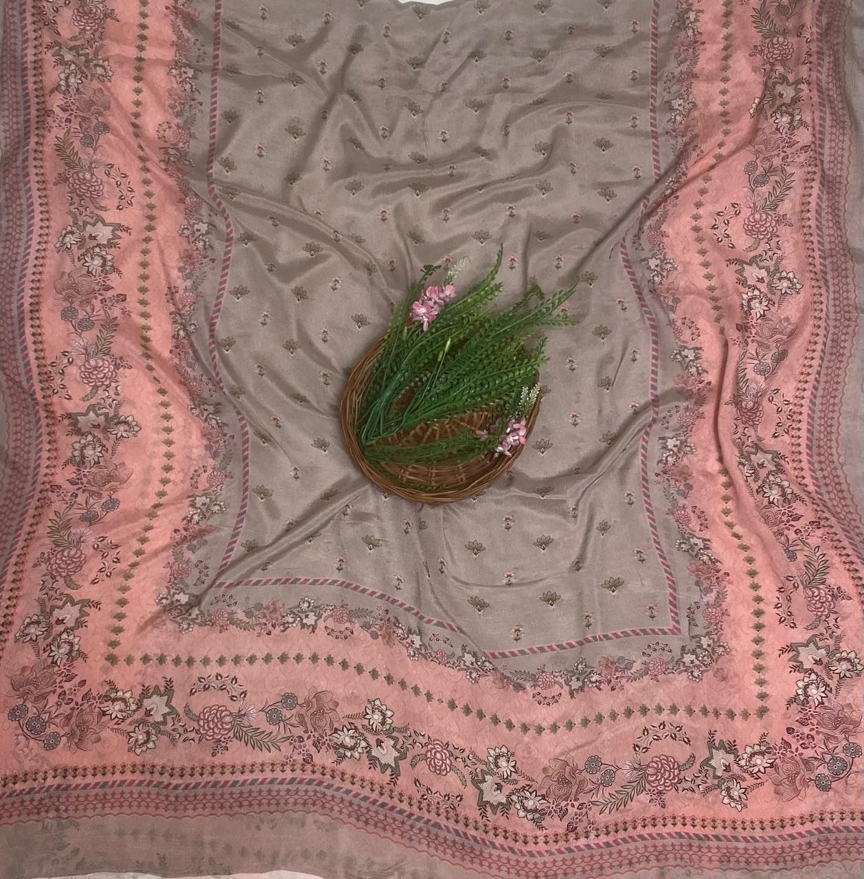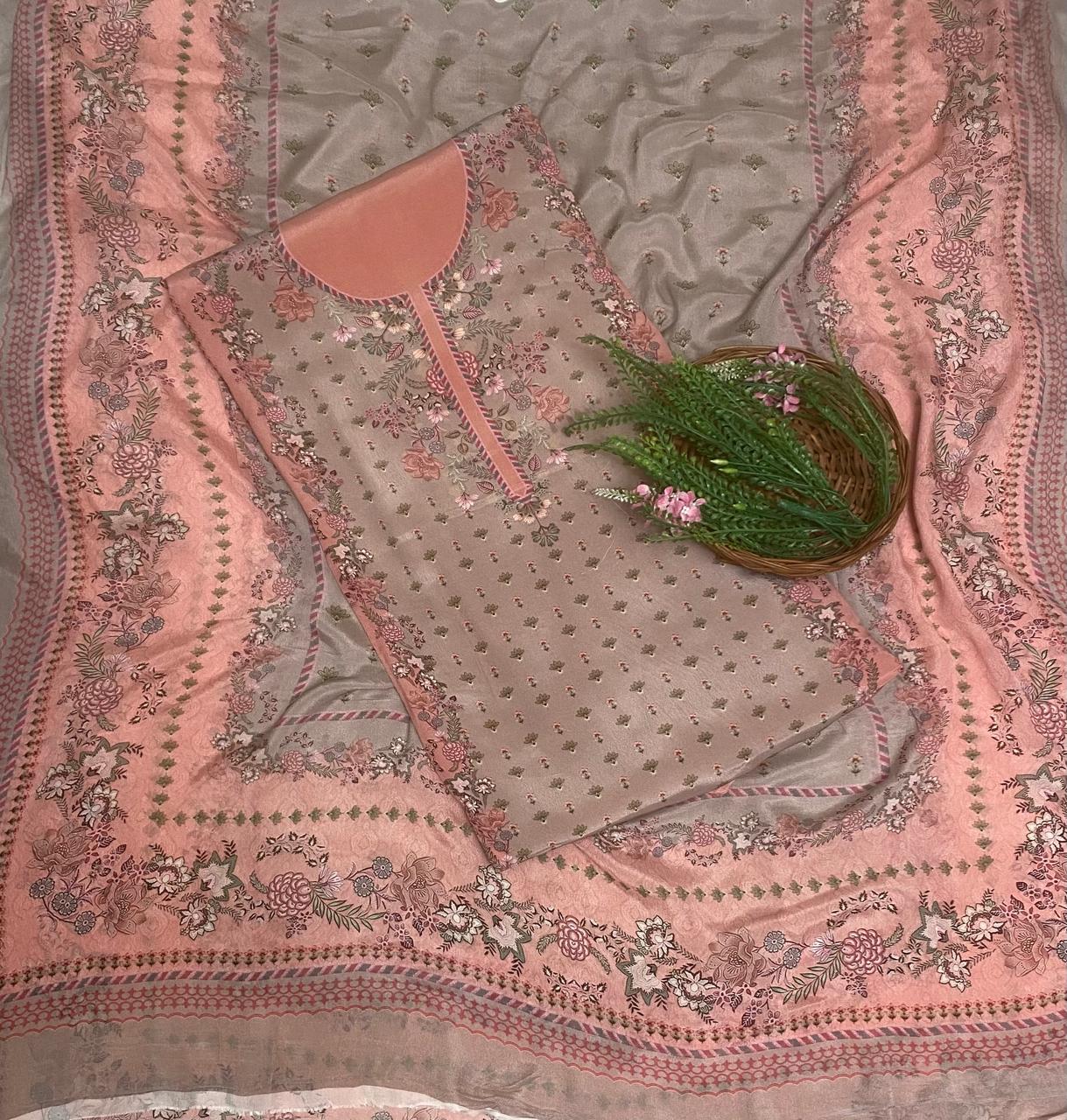 (Pre-Order) Crepe Peach Suit Fabric / Phoolon Ka Ghar