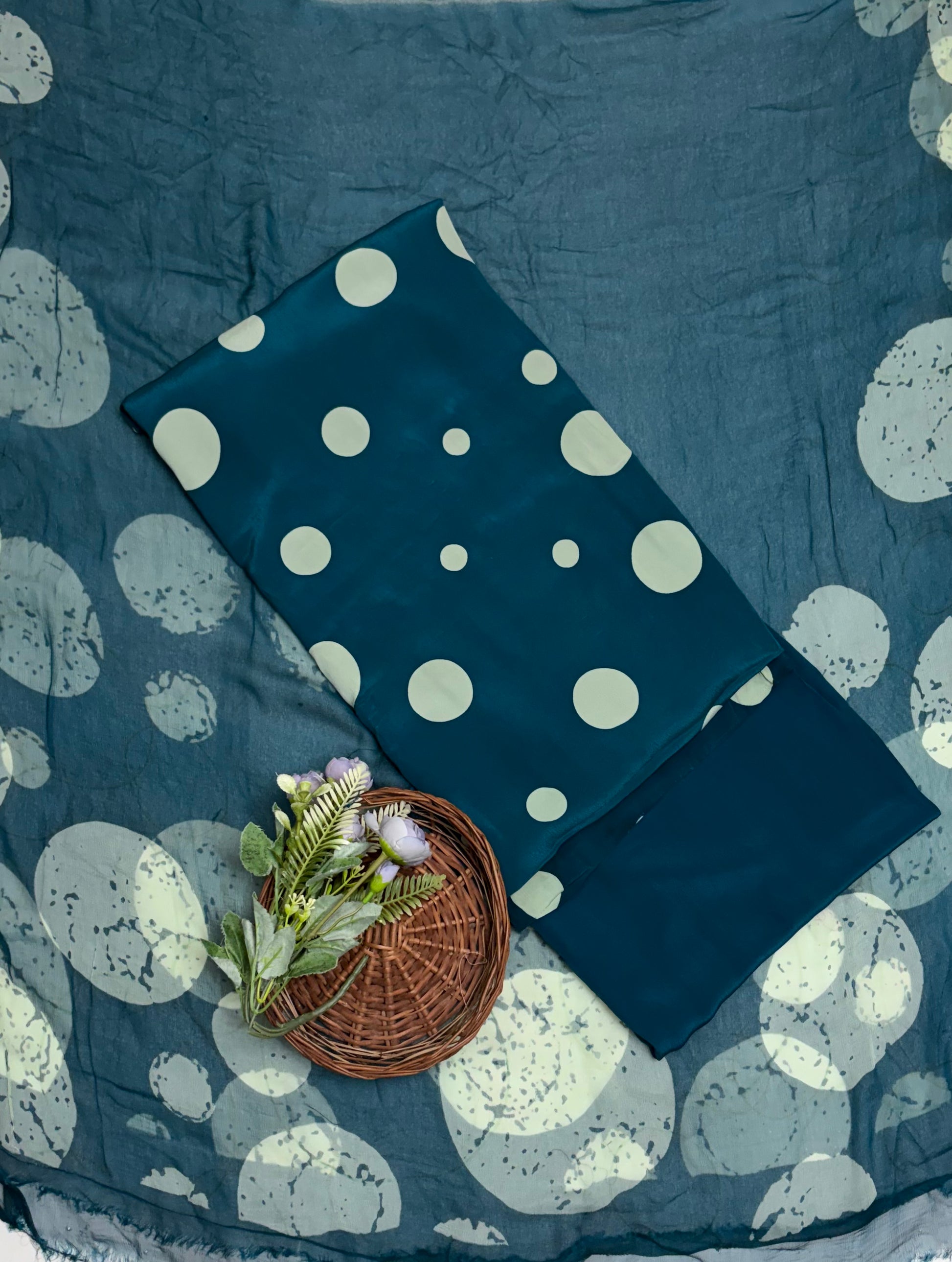 Crepe Polka Peacock Blue Suit Fabric/ Polka Story