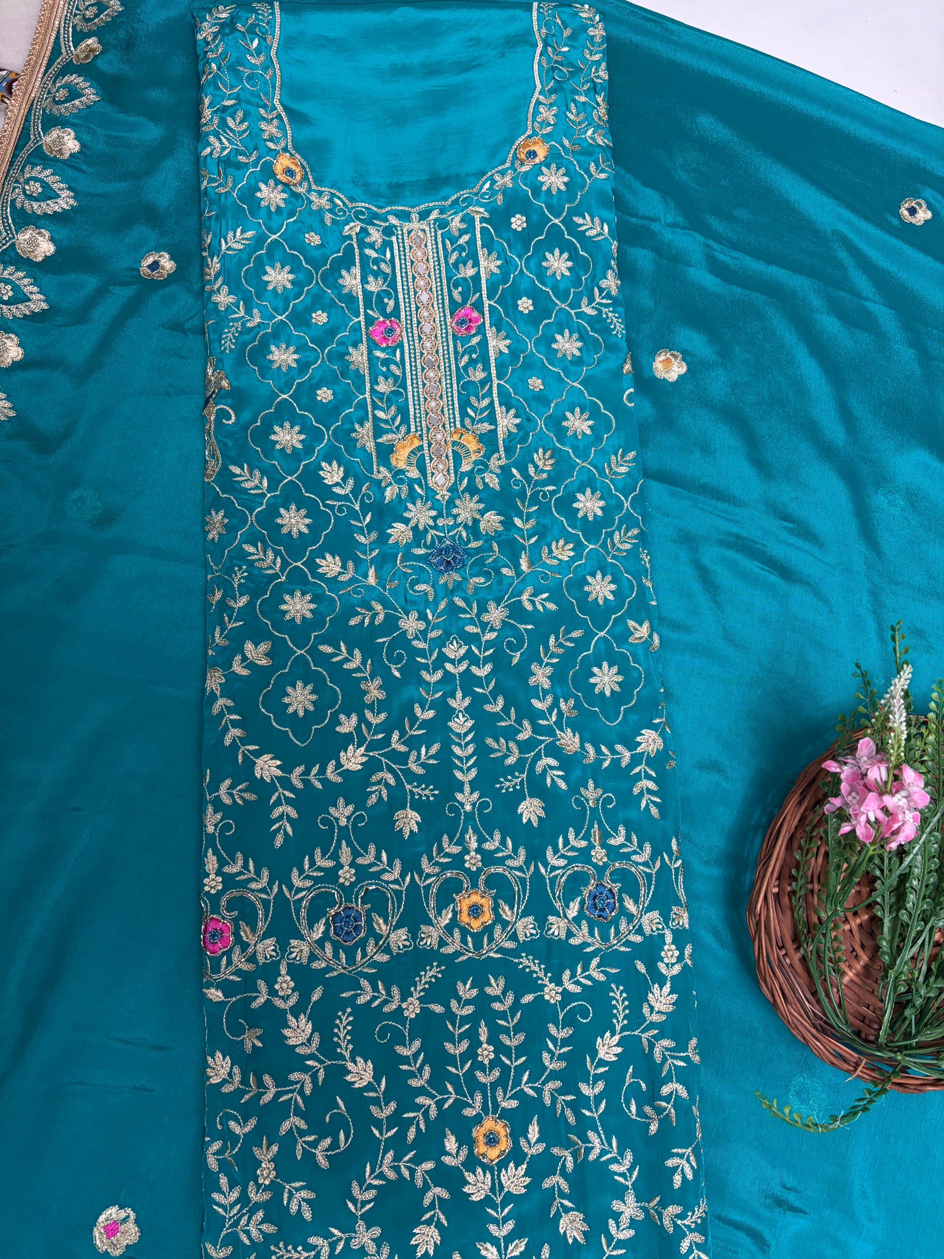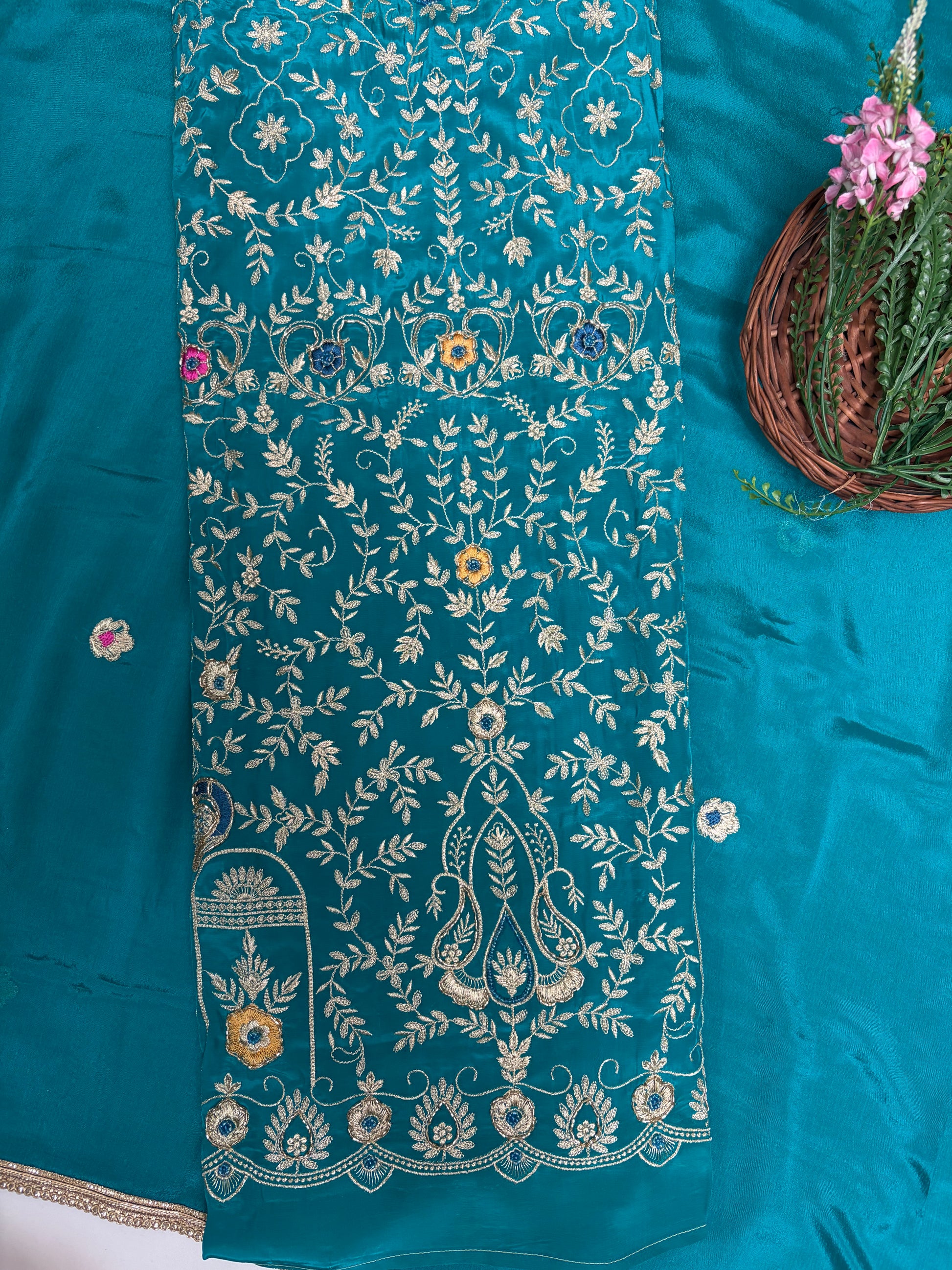 Crepe Sea Green Suit Fabric / Karwachauth Collection