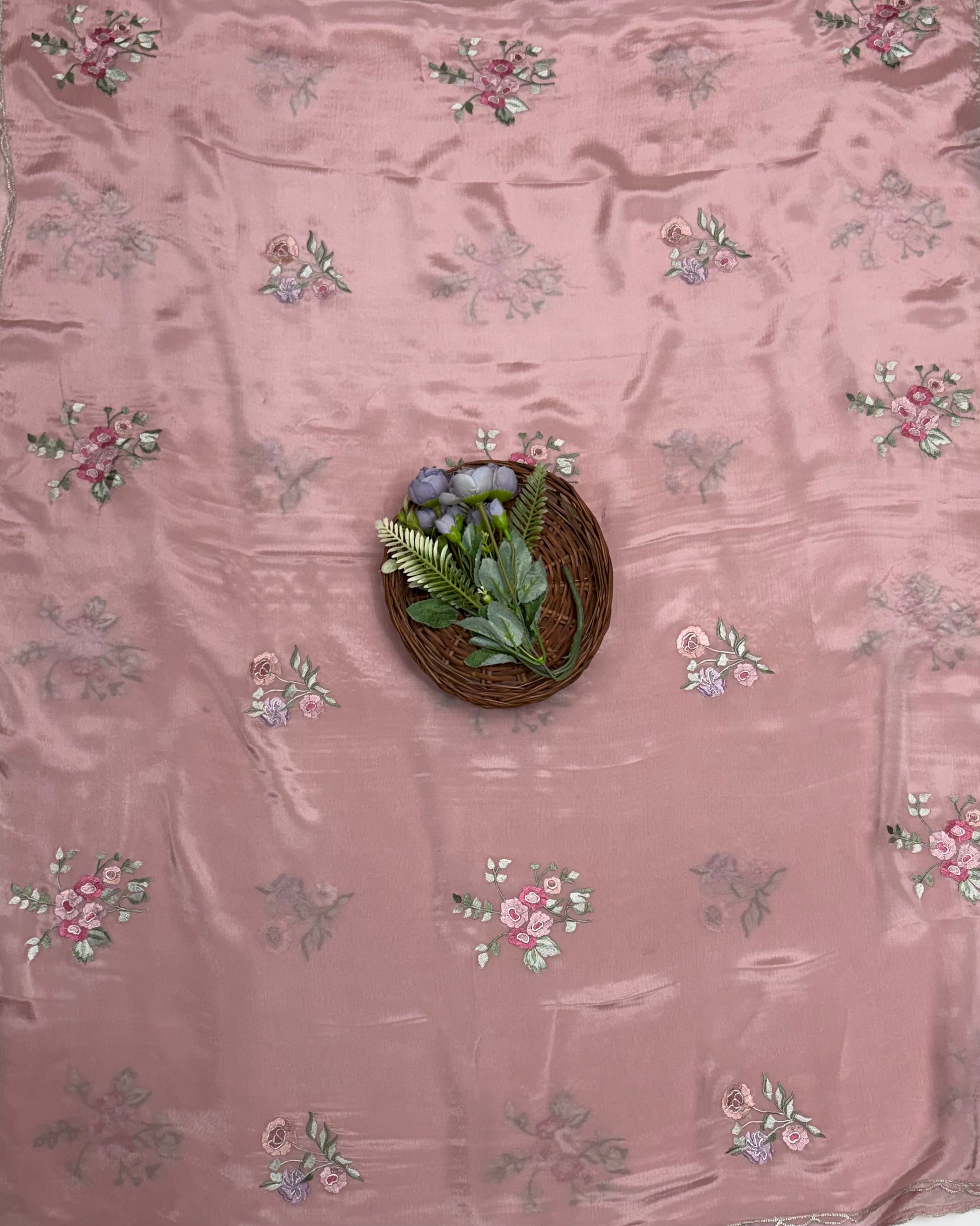 Crepe Powder Pink Suit Fabric / Karwachauth Collection