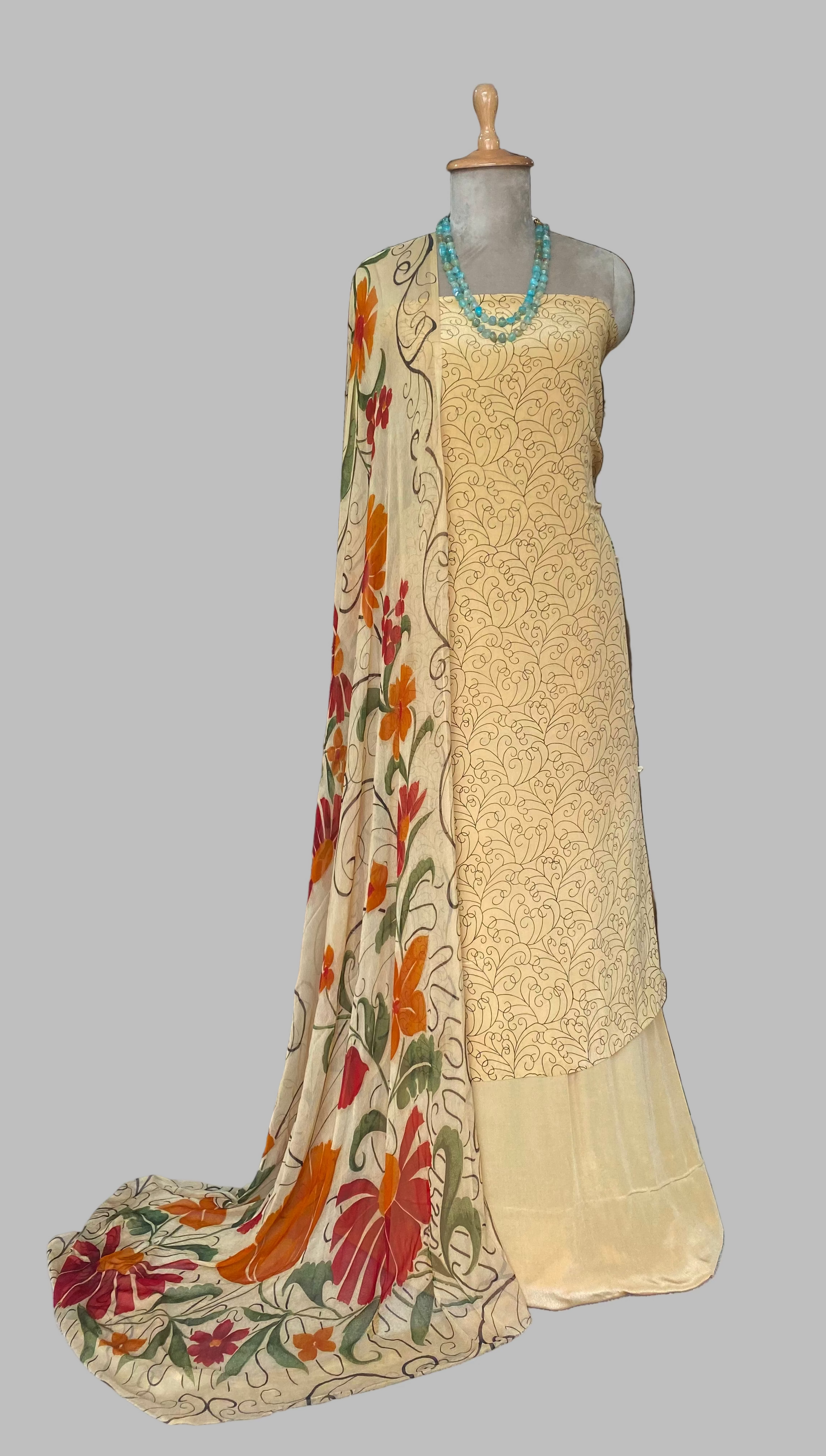 (Pre- Order) Crepe Soil Suit Fabric/ Phoolon Ka Ghar