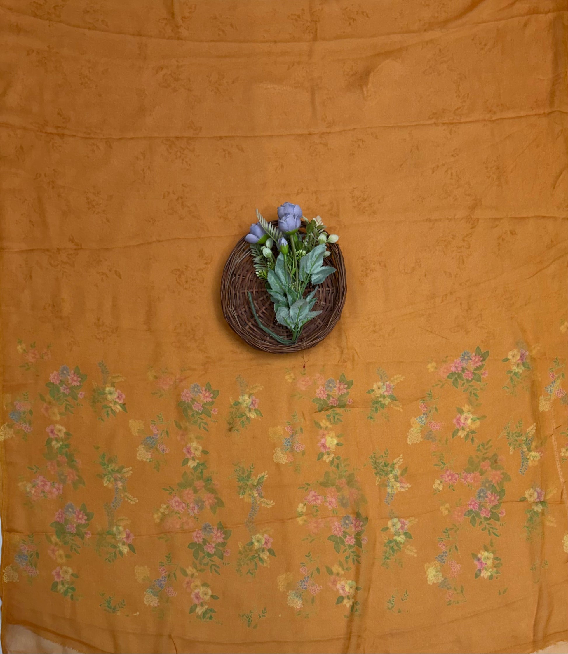 Crepe Mustard Suit Fabric / Phoolon Ka Ghar