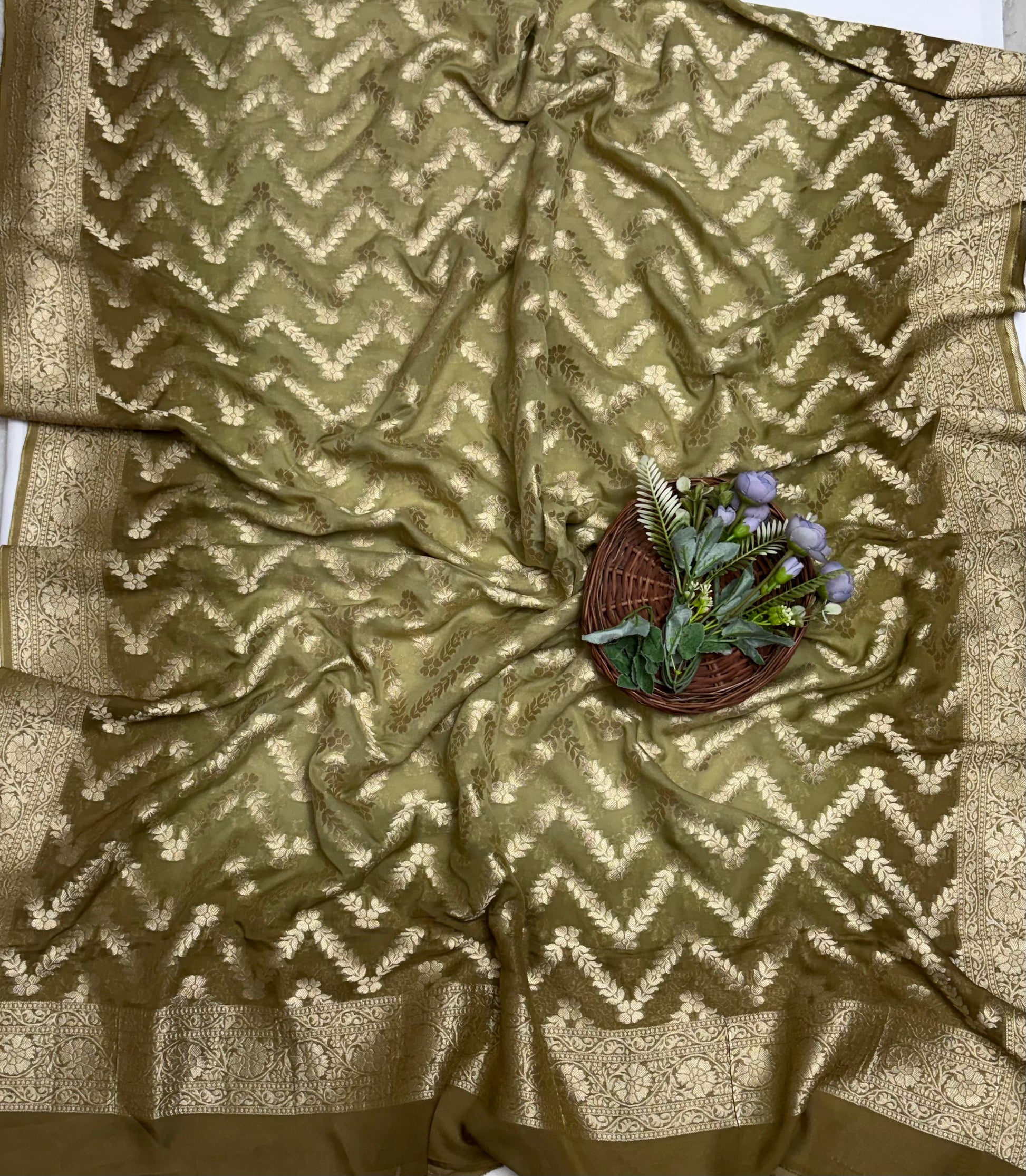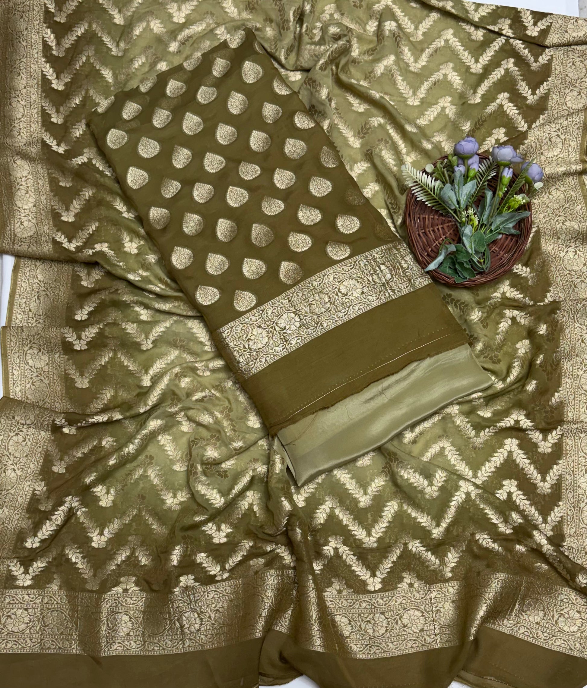 Georgette Banarasi Mehndi Green Suit Fabric / Banarasi Baithak