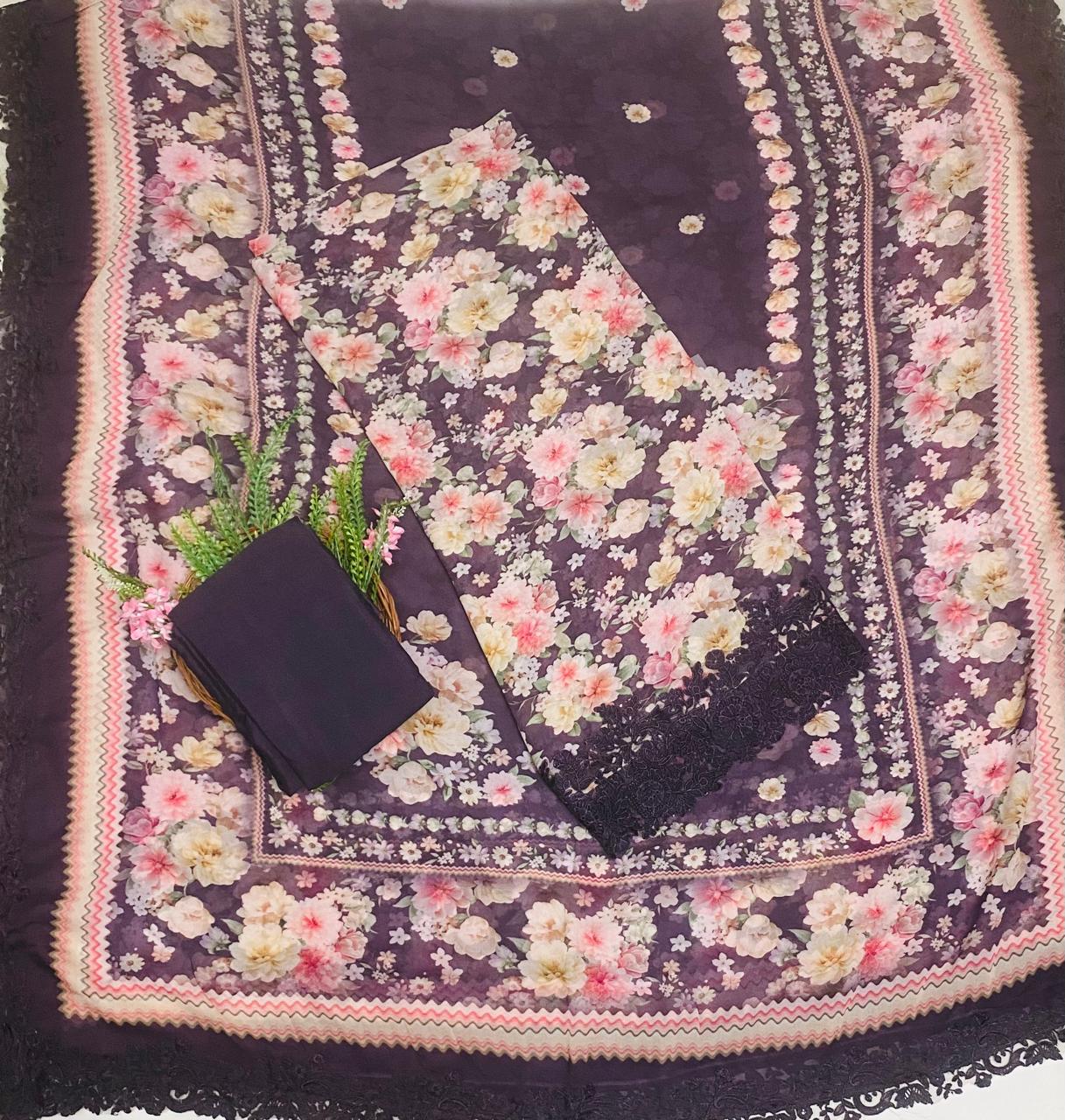Georgette Dark Wine Suit Fabric / Phoolon Ka Ghar