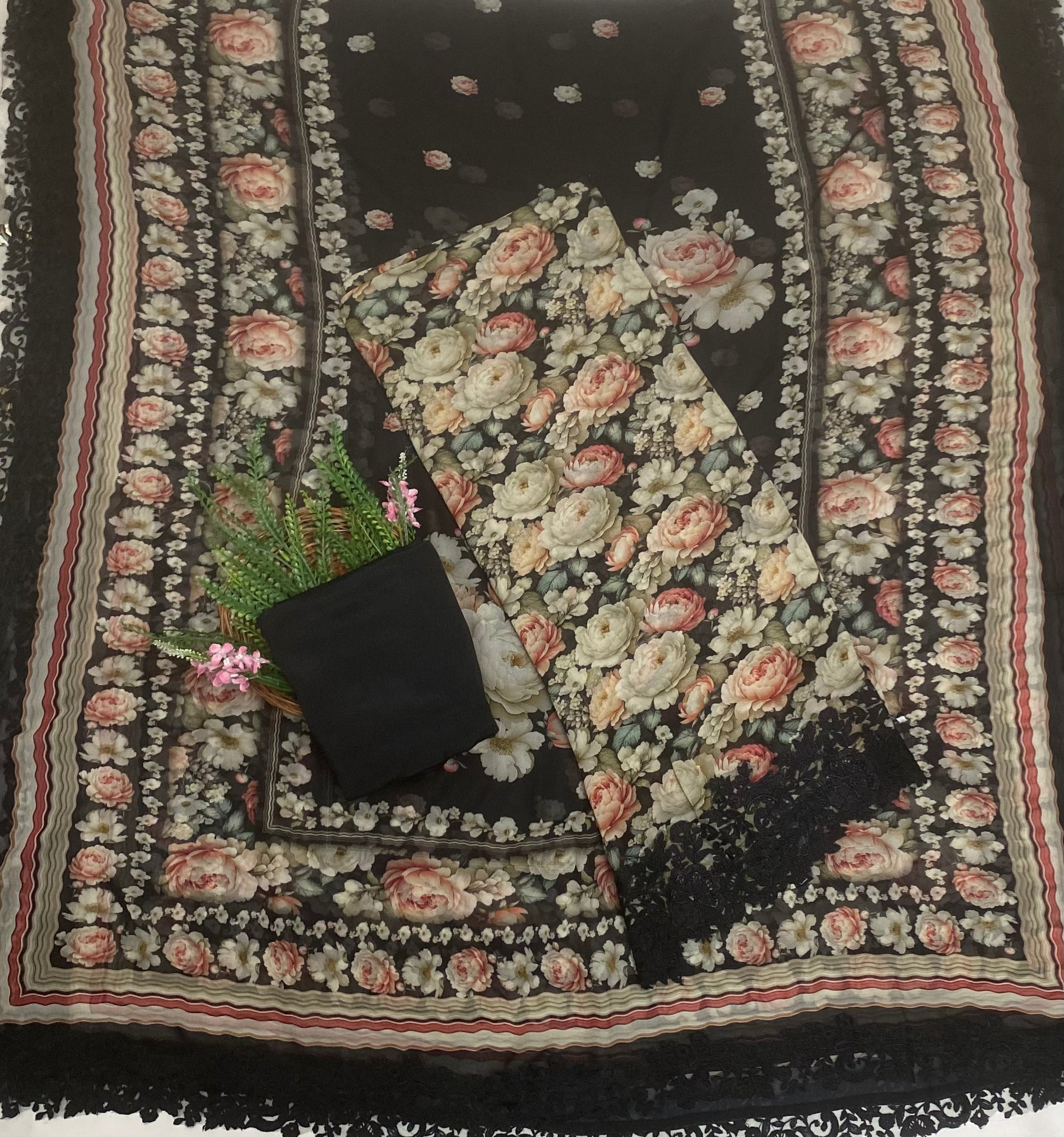 Georgette Black Suit Fabric / Phoolon Ka Ghar