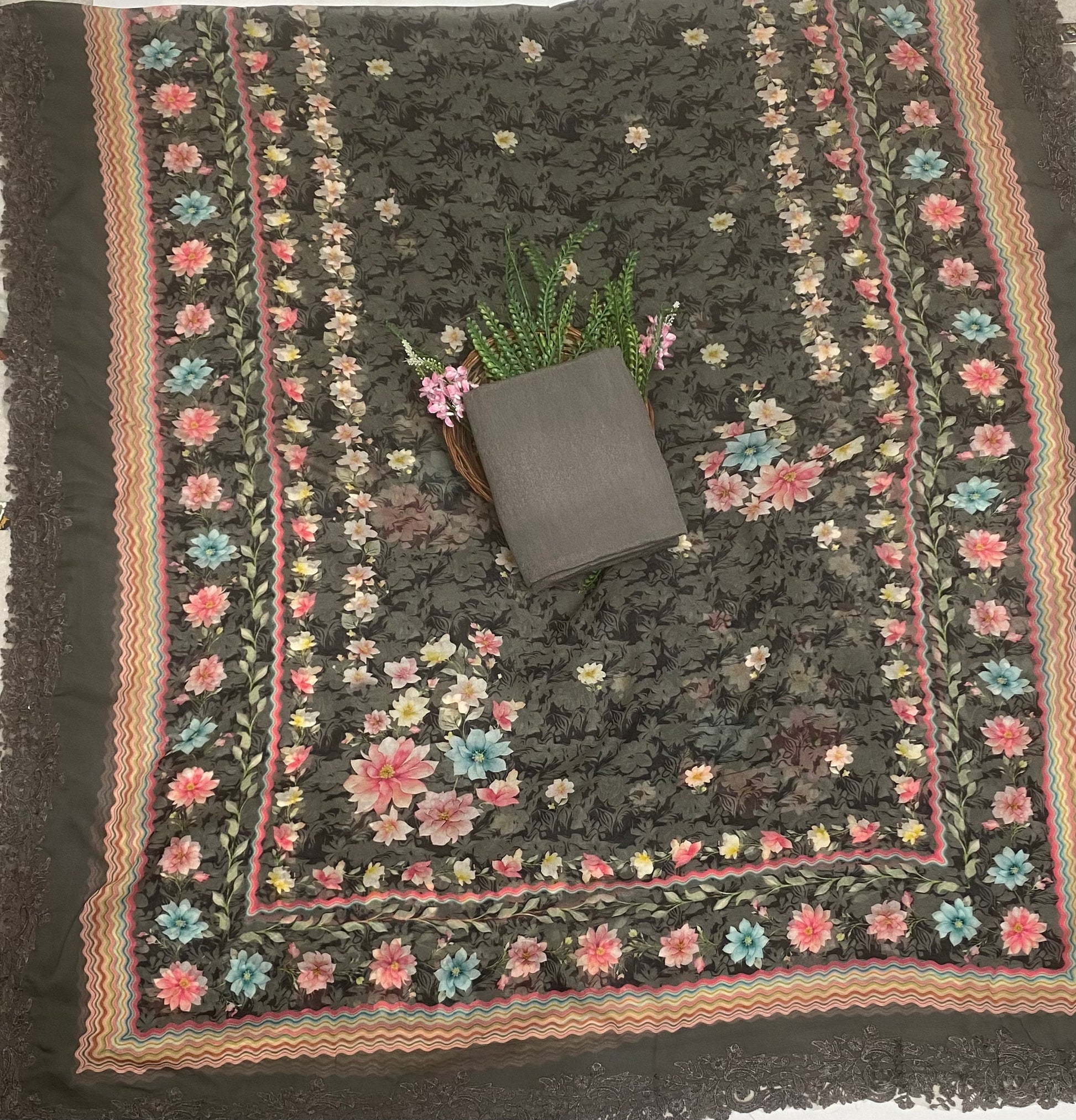 Georgette Dark Grey Suit Fabric / Phoolon Ka Ghar