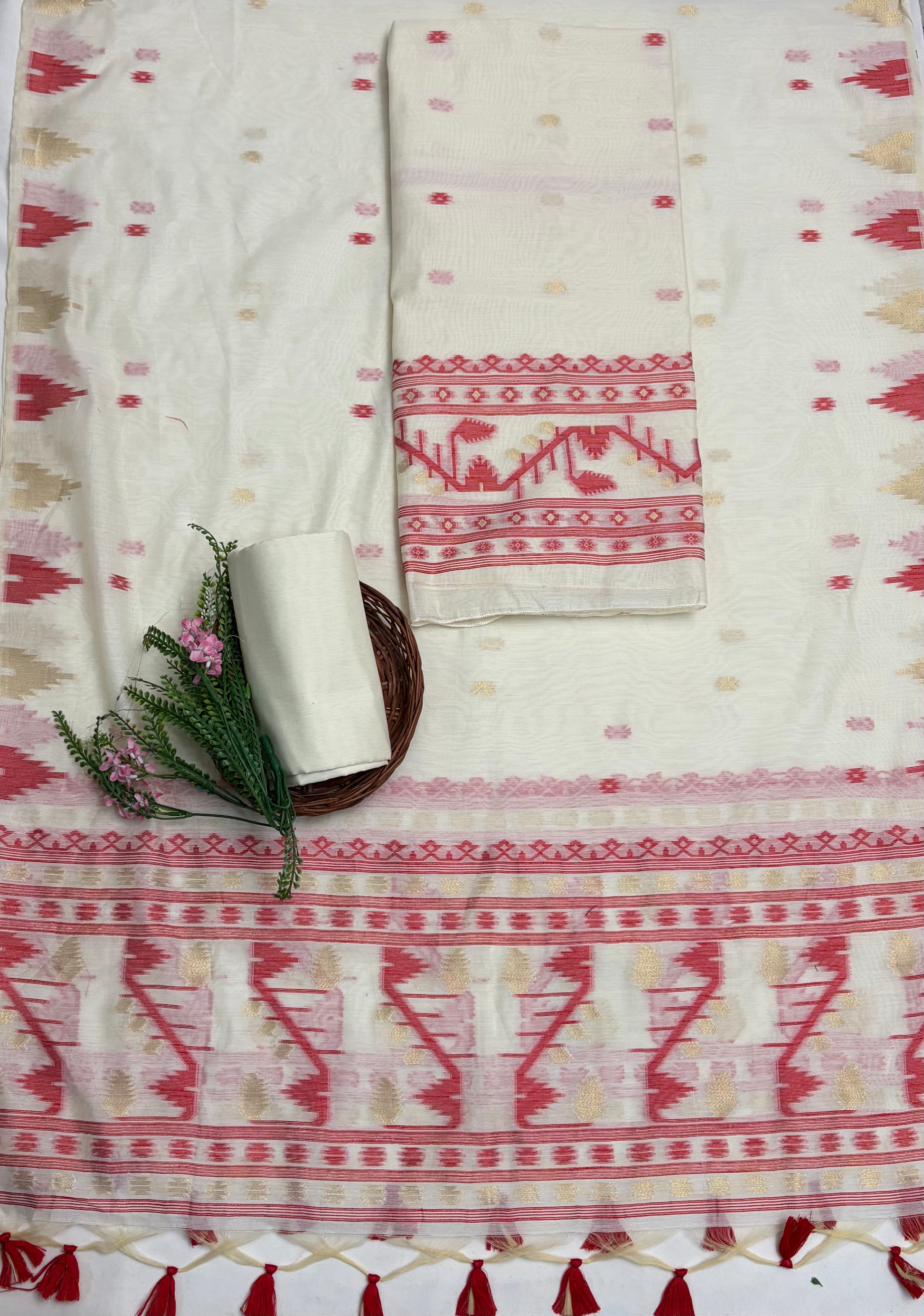 Jamdani White With Red Suit Fabric / Jamdani Suits