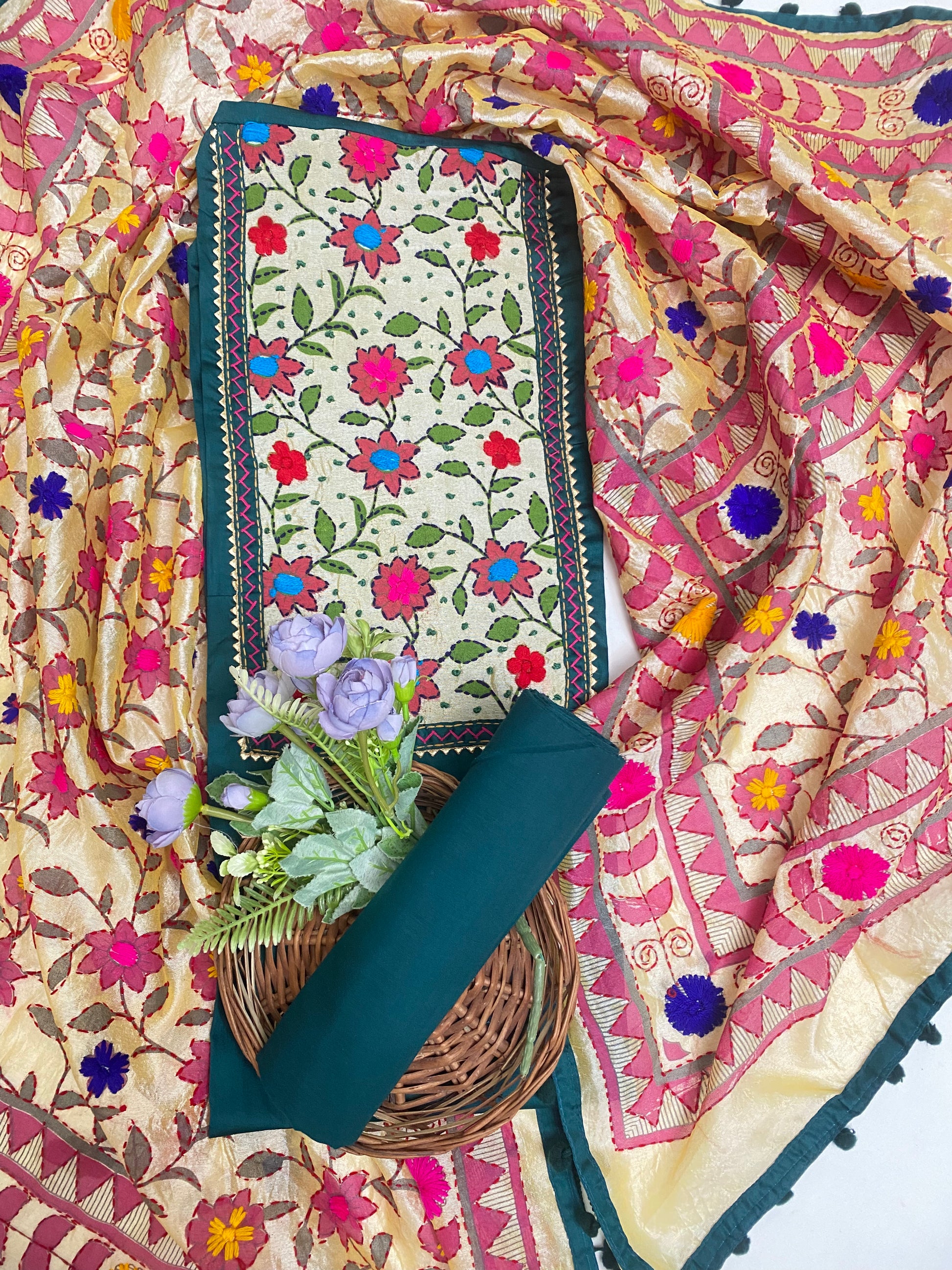 Cotton Peacock Green Suit Fabric / Jaipuri Suits