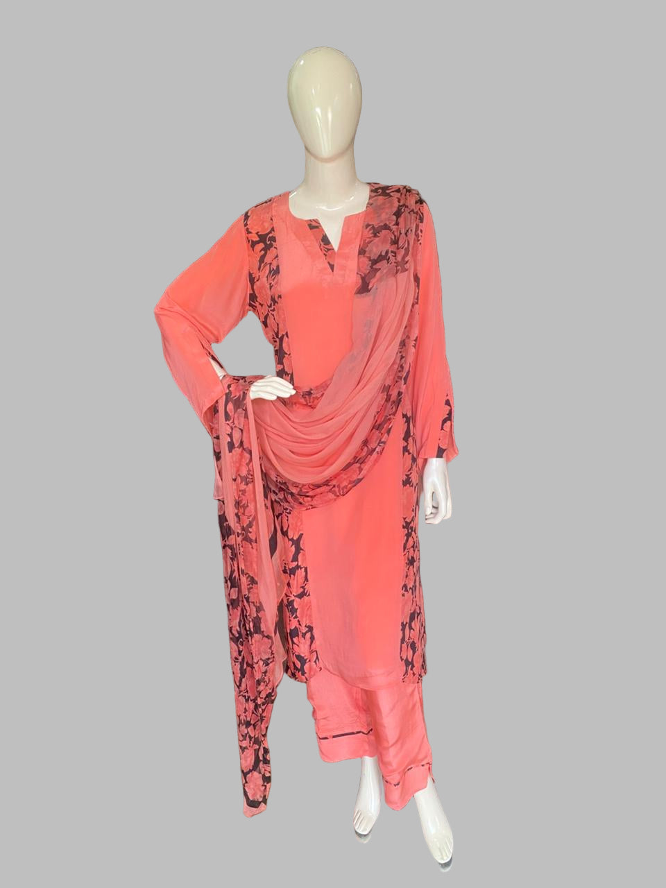 Crepe Peach Stitched Suit / Panel Design
