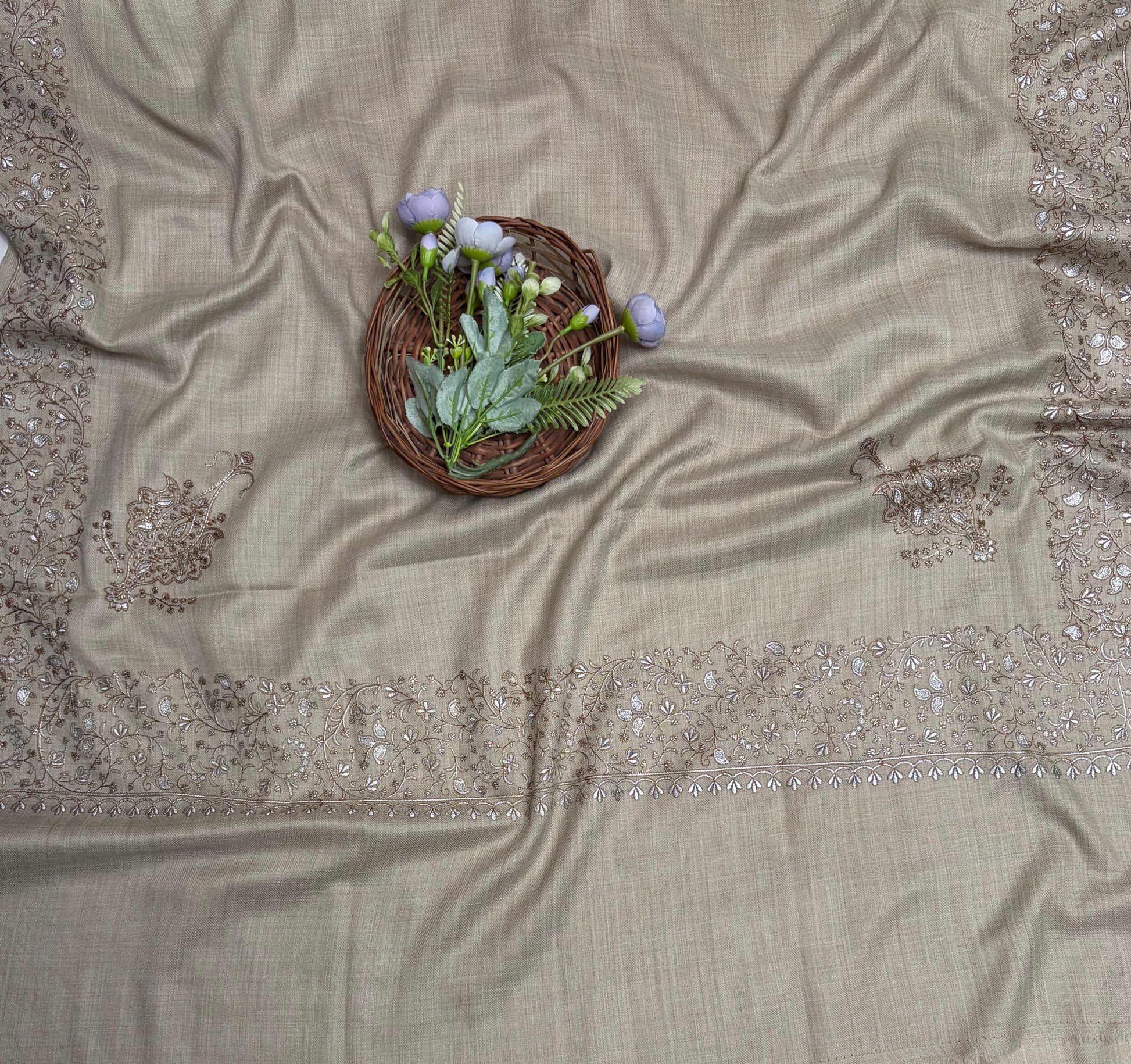 Pashmina Beige Shawl Fabric / Pashmina Shawls