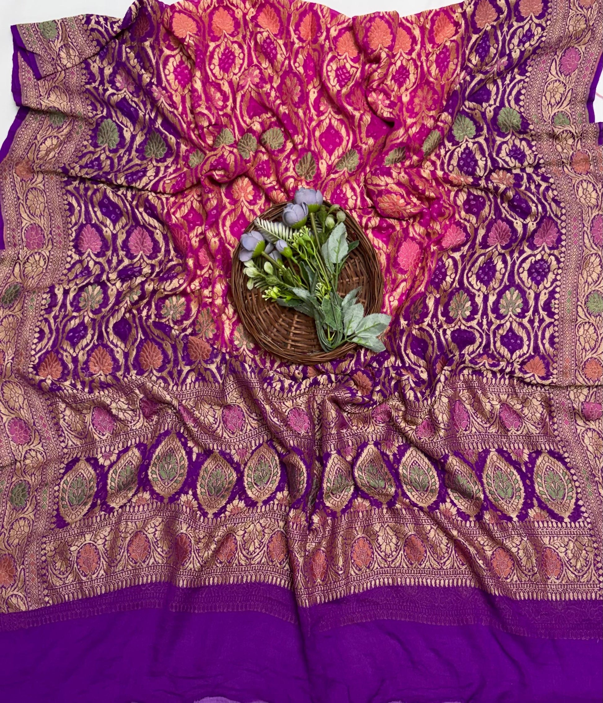 Meenakari Bandhani Purplish Wine Dupatta Fabric / Banarasi Baithak