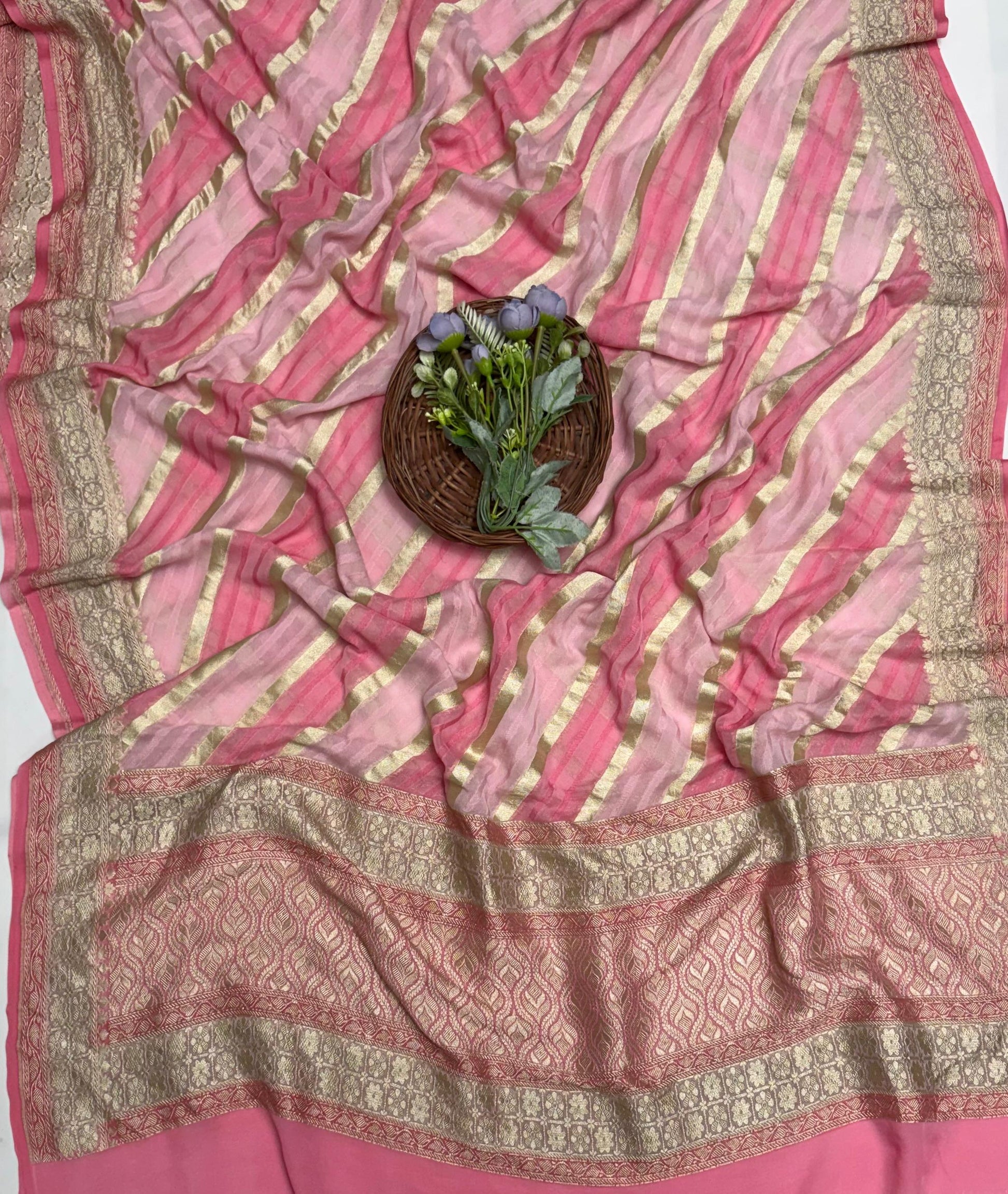 Pure Khaddi Georgette Pink Dupatta Fabric / Banarasi Baithak