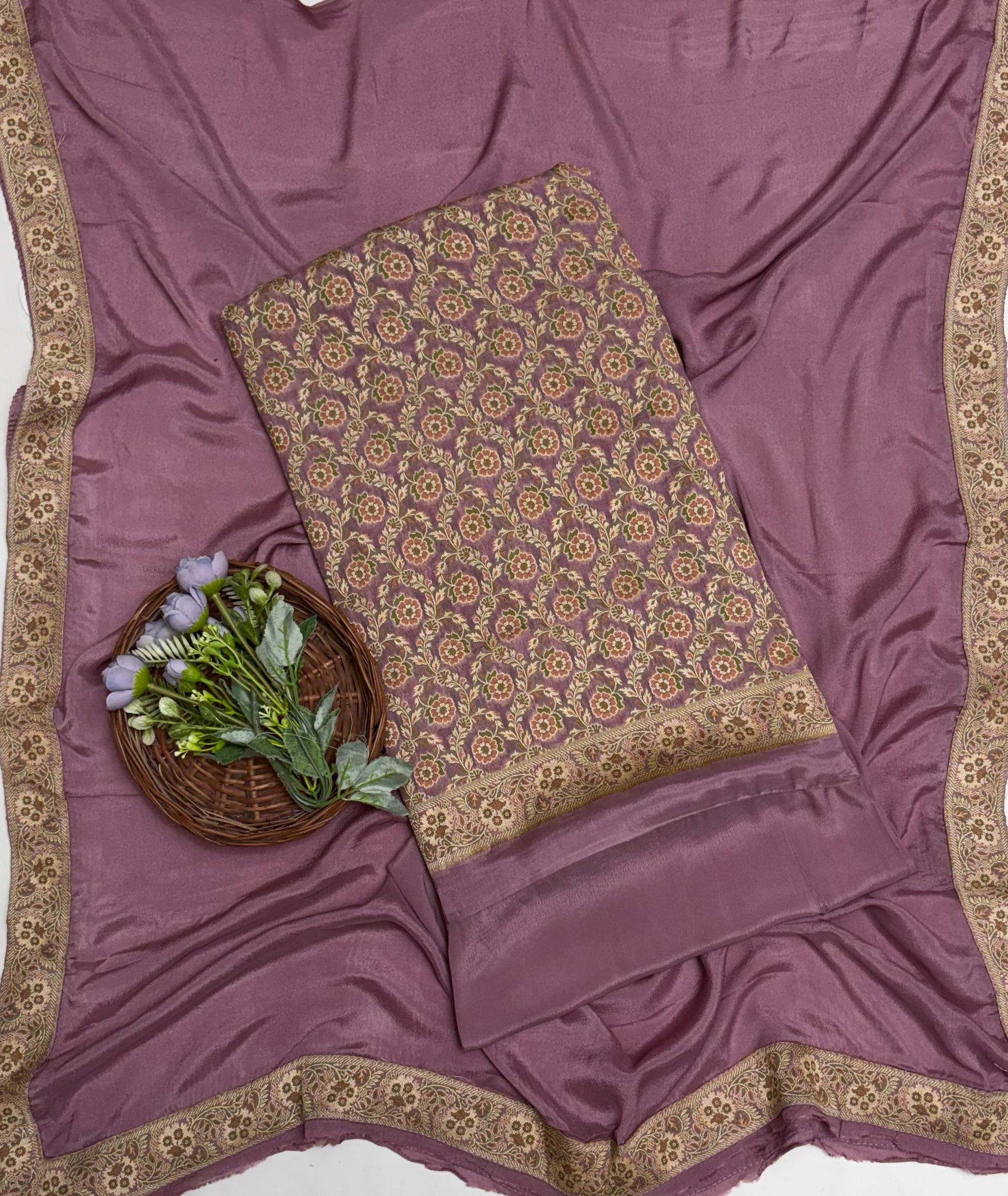 Pure Khaddi Georgette Dusty Lilac Suit Fabric / Banarasi Baithak