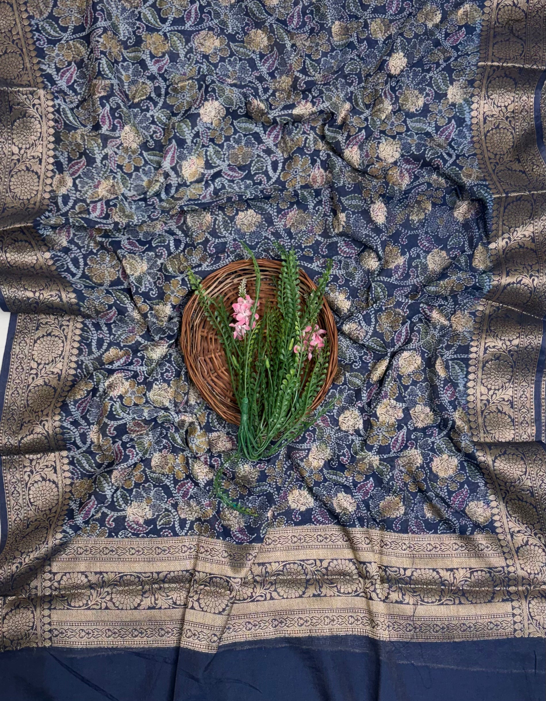 Pure Maheshwari Navy Blue Suit Fabric / Maheshwari Suits