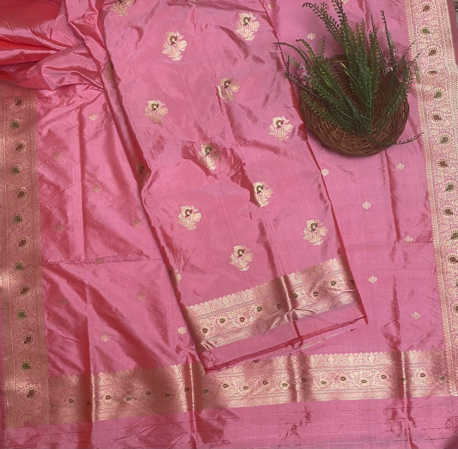Pure Silk Pink Suit Fabric/ Karwachauth Collection
