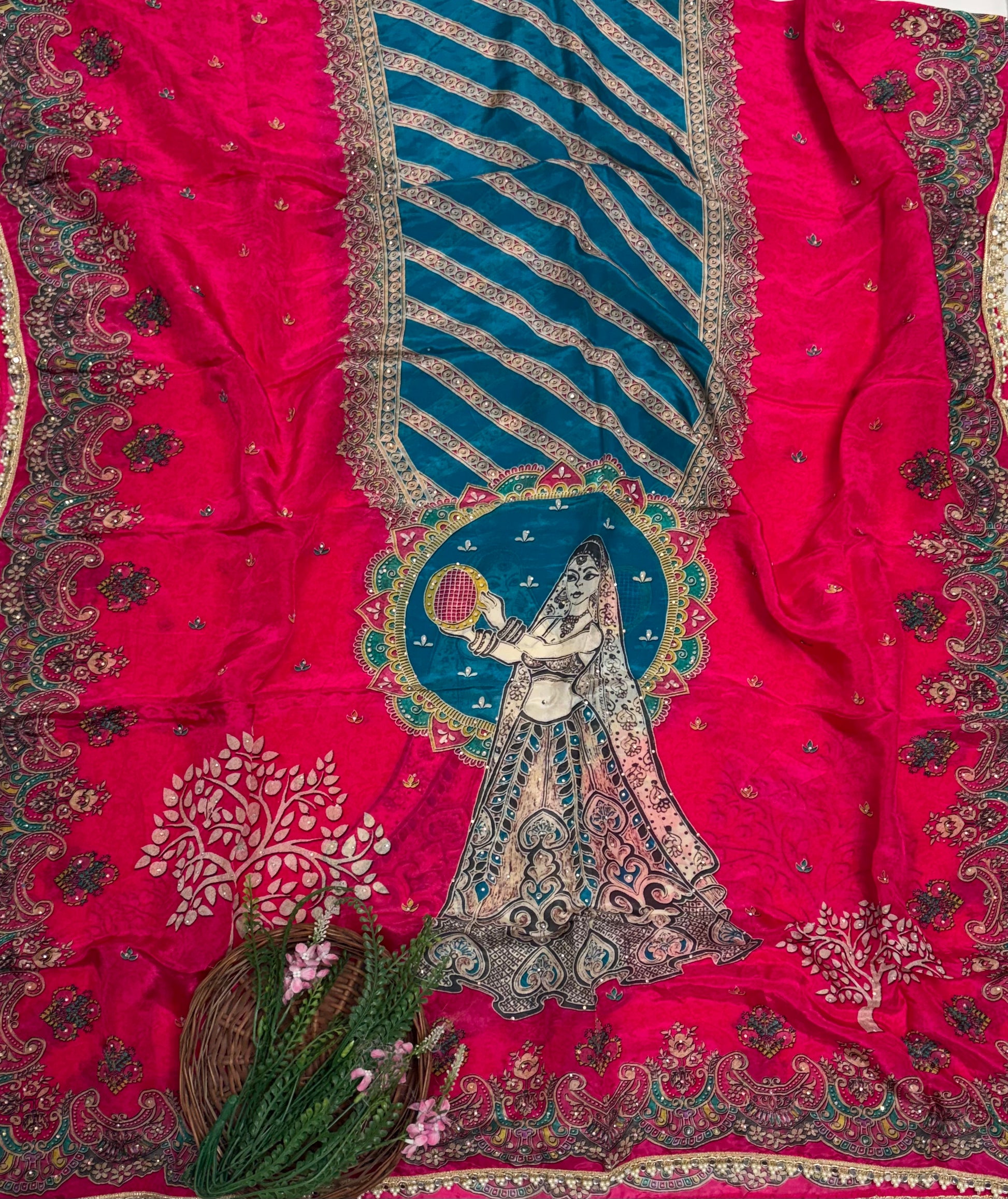 Crepe Rani Pink Suit Fabric / Partywear Collection